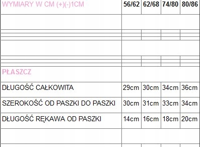 56/62, 62/ 68, 74/80, 80/86