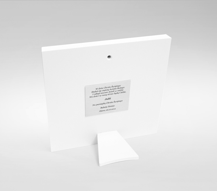 Посвященная табличка размещается на обратной стороне серебряной картины и выполнена в технике гравюры, что означает, что выбранный вами текст будет напечатан на тонкой алюминиевой пластине. Техника гравировки гарантирует привлекательный внешний вид тарелки и ее долговечность. И самое главное, он не мешает поверхности серебряной картины, поэтому не становится персонализированным товаром - поэтому вы можете вернуть его в течение 14 дней без объяснения причин.