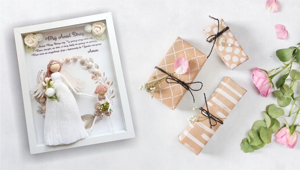 Крещение сувенир -опекун в кадре с подарком для мальчика подарка