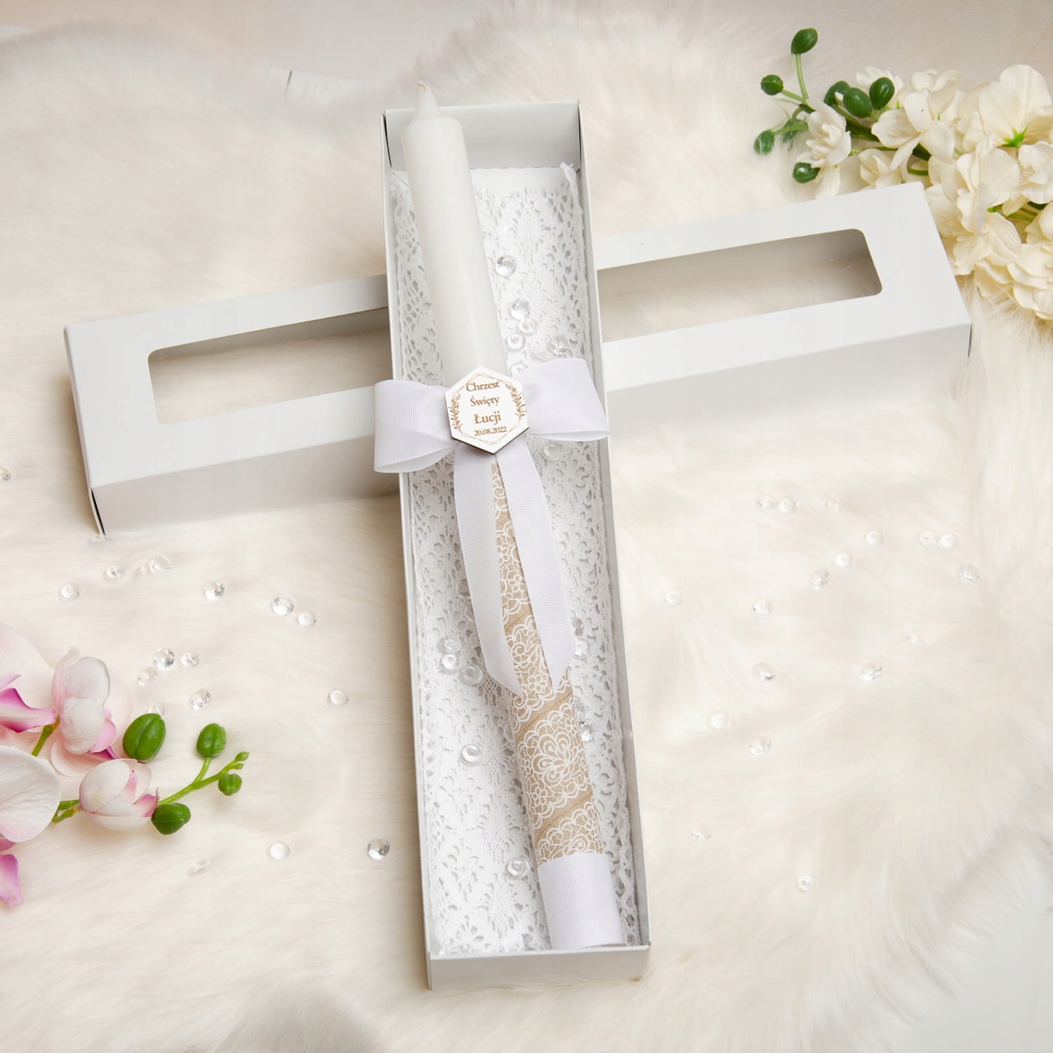 ❤️Свеча для крещения в стиле бохо с персонализированным набором в коробке❤️