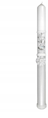 Свеча парафиновая детская на Святое Крещение, белая, декорированная