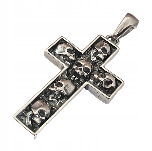 КРЕСТ СЕРЕБРЯНЫЙ 925 ЧЕРЕП КРЕСТ С ЧЕРЕПАМИ