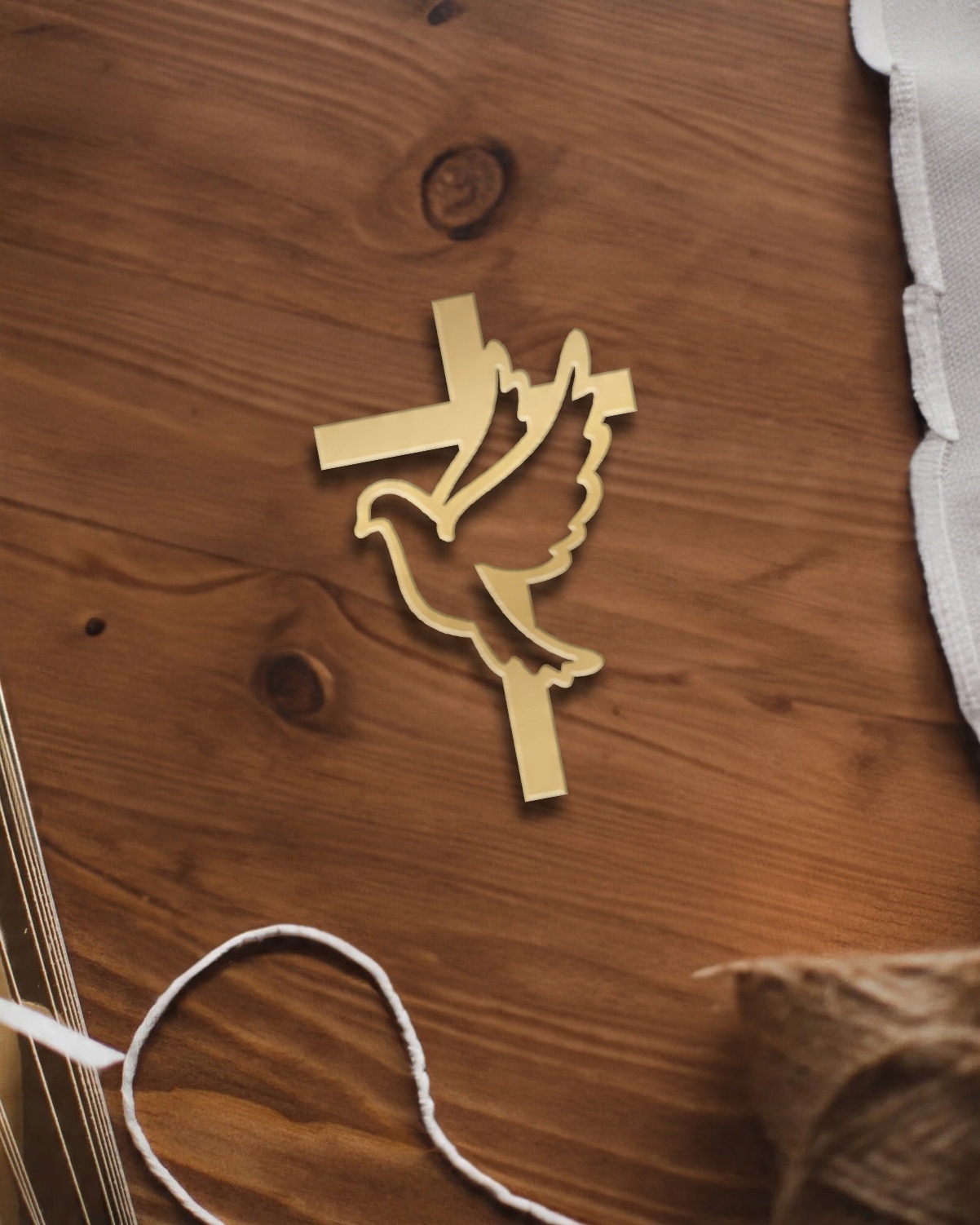 ЗОЛОТОЙ КРЕСТ С ГОЛУБЬЕМ ИЗ ЗЕРКАЛЬНОГО ПЛЕКСИЯ. ИДЕАЛЬНОЕ УКРАШЕНИЕ ТОРТА ДЛЯ ПЕРВОГО СВЯТОГО ПРИЧАСТИЯ ИЛИ КРЕЩЕНИЯ. НЕЗАВИСИМО ОТ СОБЫТИЯ - СВЯТОГО ПРИЧАСТИЯ ИЛИ КРЕЩЕНИЯ, ЭТОТ УНИКАЛЬНЫЙ И КРАСИВЫЙ КРЕСТ ДЛЯ ТОРТА ПРЕКРАСНО ЗАВЕРШИТ НЕПОВТОРИМЫЙ ХАРАКТЕР ЭТОГО ДНЯ.