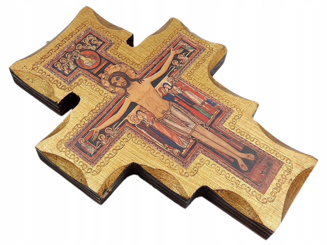 ✔️изделие, внешний вид которого отсылает к кресту/иконе, расположенному в базилике Св. Клэр в Ассизи