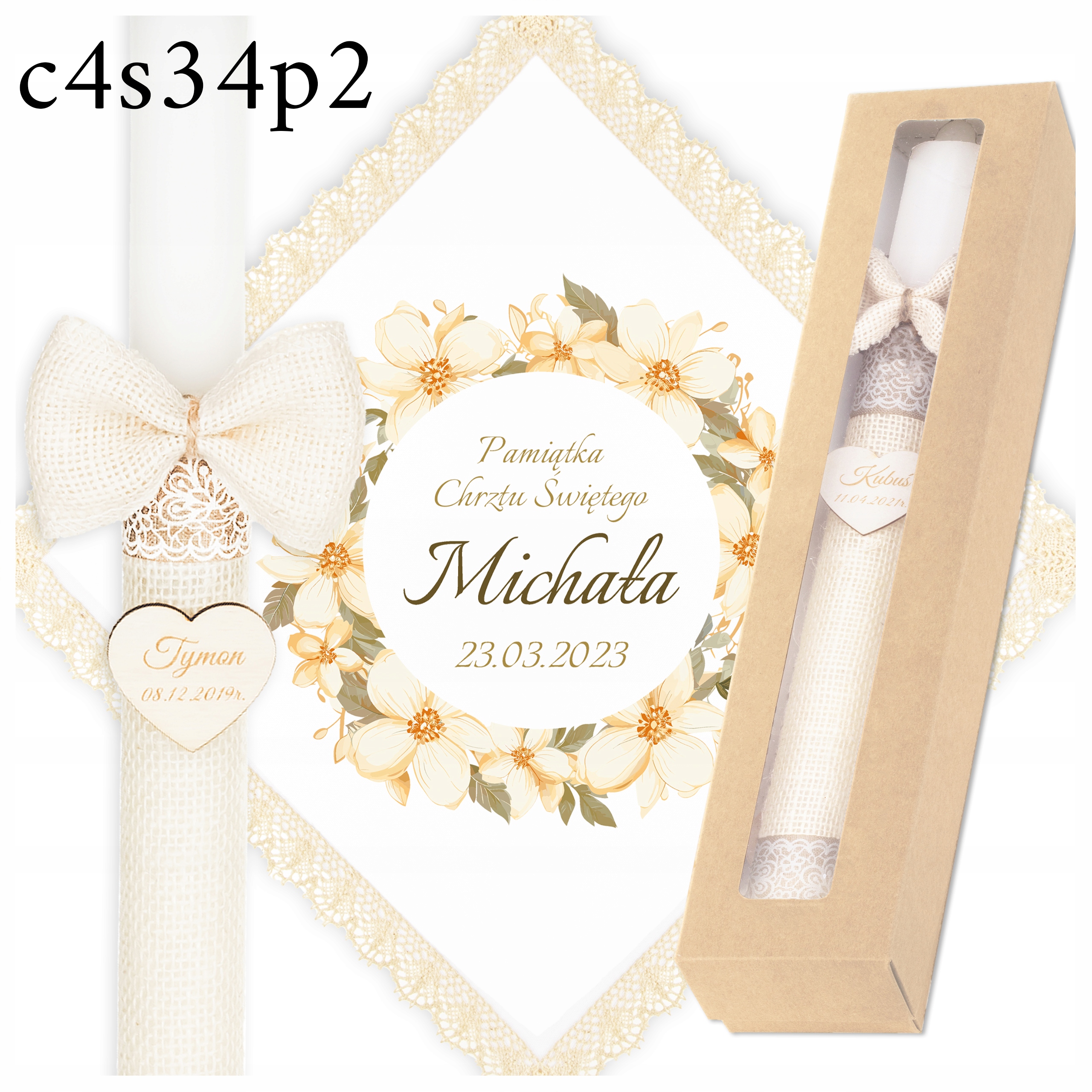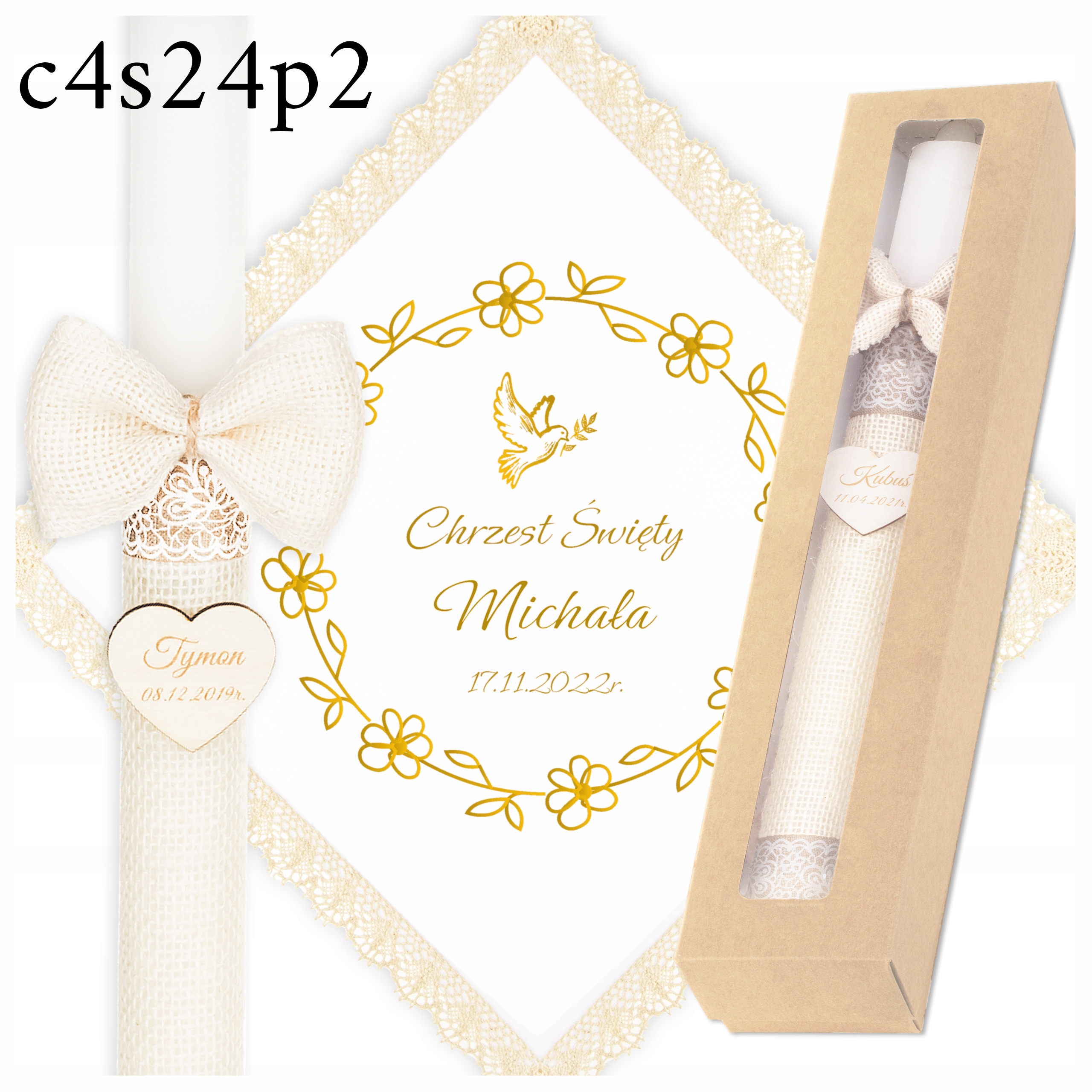 Крестильный халат и свеча Комплект Крещение + Коробка СУВЕНИРЫ СВЯТОГО КРЕЩЕНИЯ