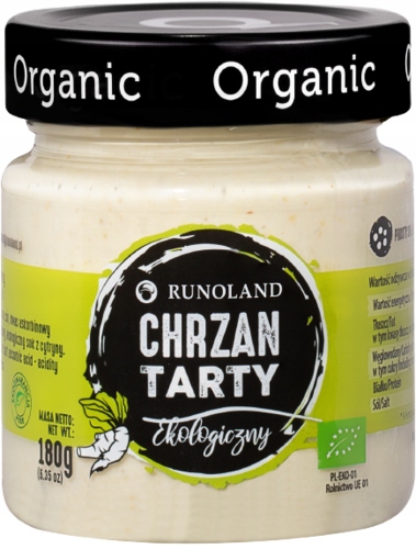 Органический тертый хрен – натуральный продукт, без консервантов и ненужных искусственных добавок. Содержание хрена составляет целых 82%, поэтому это очень мощный продукт. Это сливочная и, прежде всего, полезная добавка к основным блюдам, бутербродам, соусам, паштетам и даже кислому ржаному супу.
