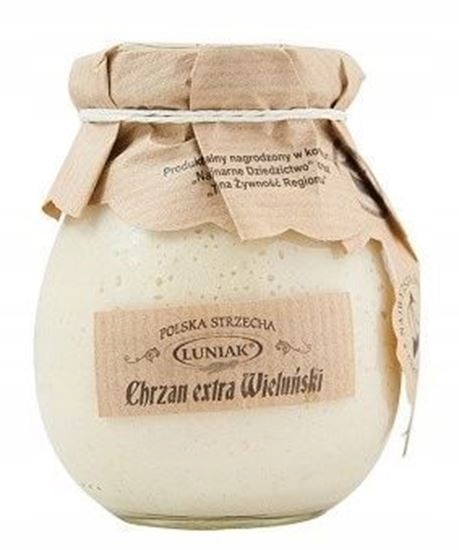 Хрен «Луняк экстра Велюньский» изготовлен из натуральных ингредиентов, по проверенному рецепту. Тертый хрен имеет ярко выраженный вкус и приятный аромат. Традиционный велюньский хрен является прекрасным дополнением к яйцам и мясному ассорти, он идеален для Пасхи, пасхального ржаного супа и многого другого. Тертый хрен придает блюду характер. Стоит упомянуть и о других свойствах хрена. Экстра велюньский хрен Луняк – это польский и натуральный продукт. 230Г