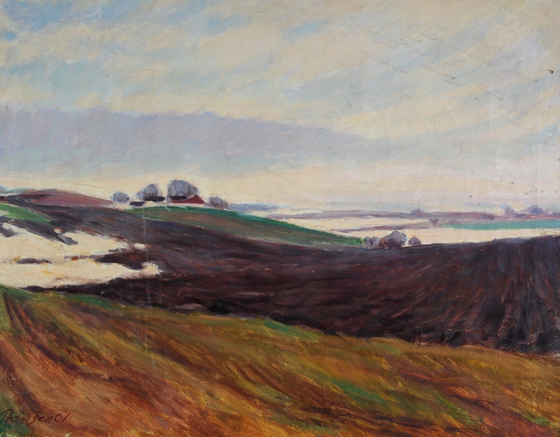 Кристиан Педерсен "Сельскохозяйственный ландшафт" Красивая масляная живопись 1961 !!!