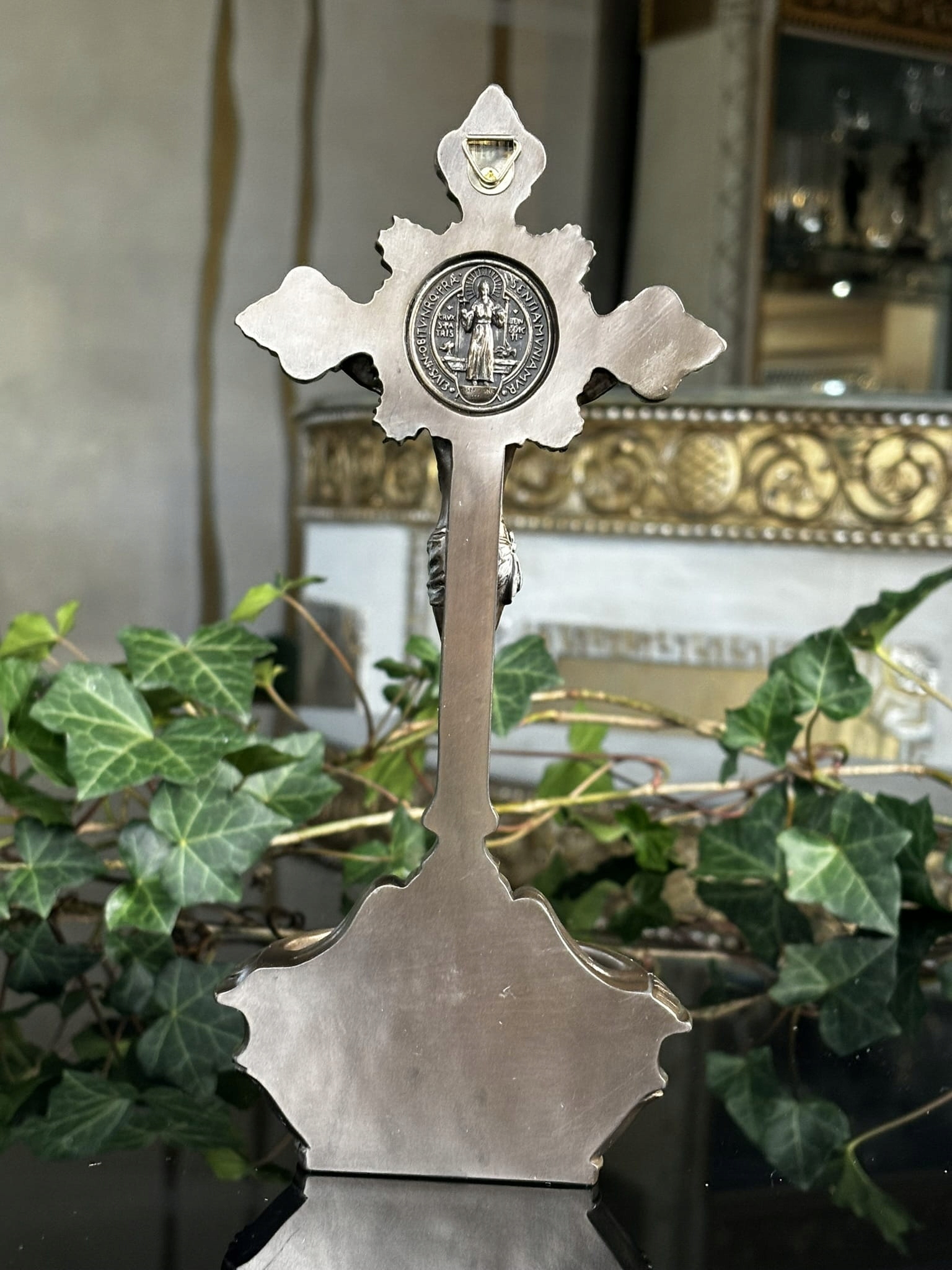 богато украшенный, с барокко мотивами, ловит глаз и является отличным декоративным элементом, внедряя атмосферу мира и отражения в комнате. Интегрированный пьедестал может использоваться в качестве сосуда для святой воды, что означает, что распятие - это не только орнамент, но и функциональный предмет религиозного поклонения
