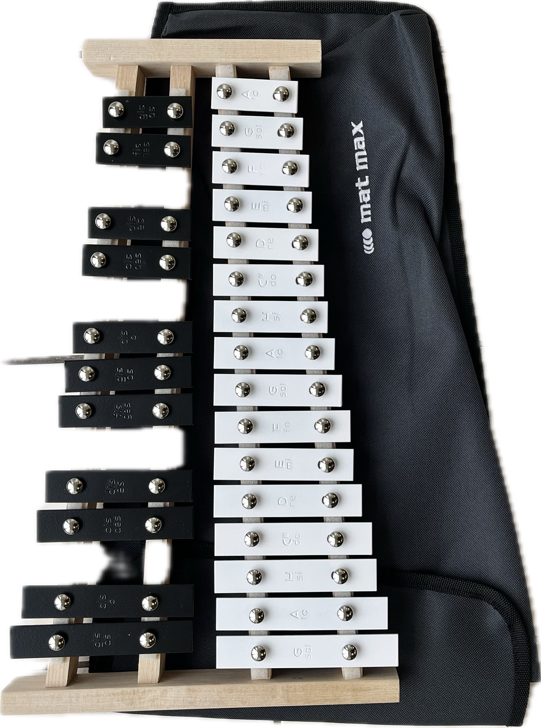 Хроматические мелодии. Электронная настройка, 27 тонов - две полные октавы с полутонами. Деревянная основа, 2 деревянные палочки в комплекте.