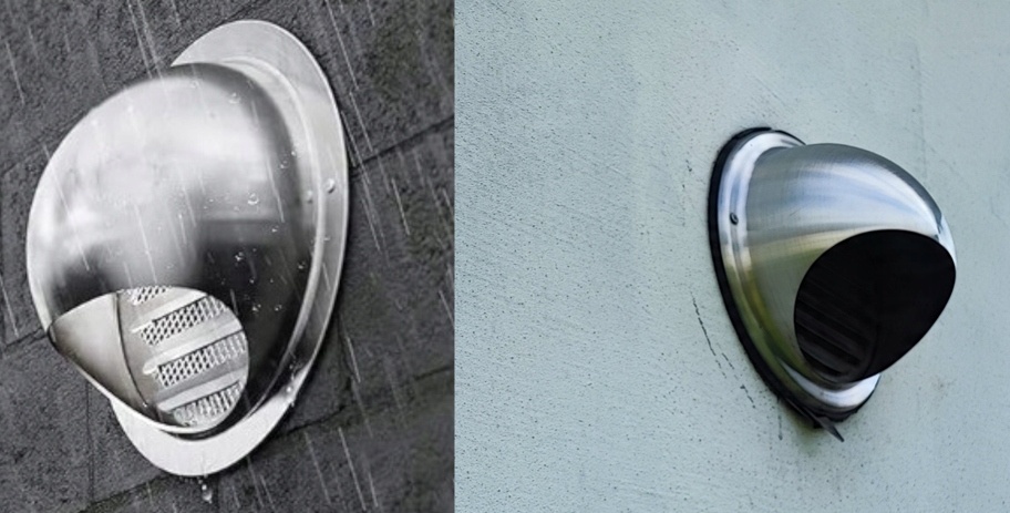 Воздухозаборник имеет полукруглую крышку, защищающую от дождя и ветра. Он изготовлен из нержавеющей стали.