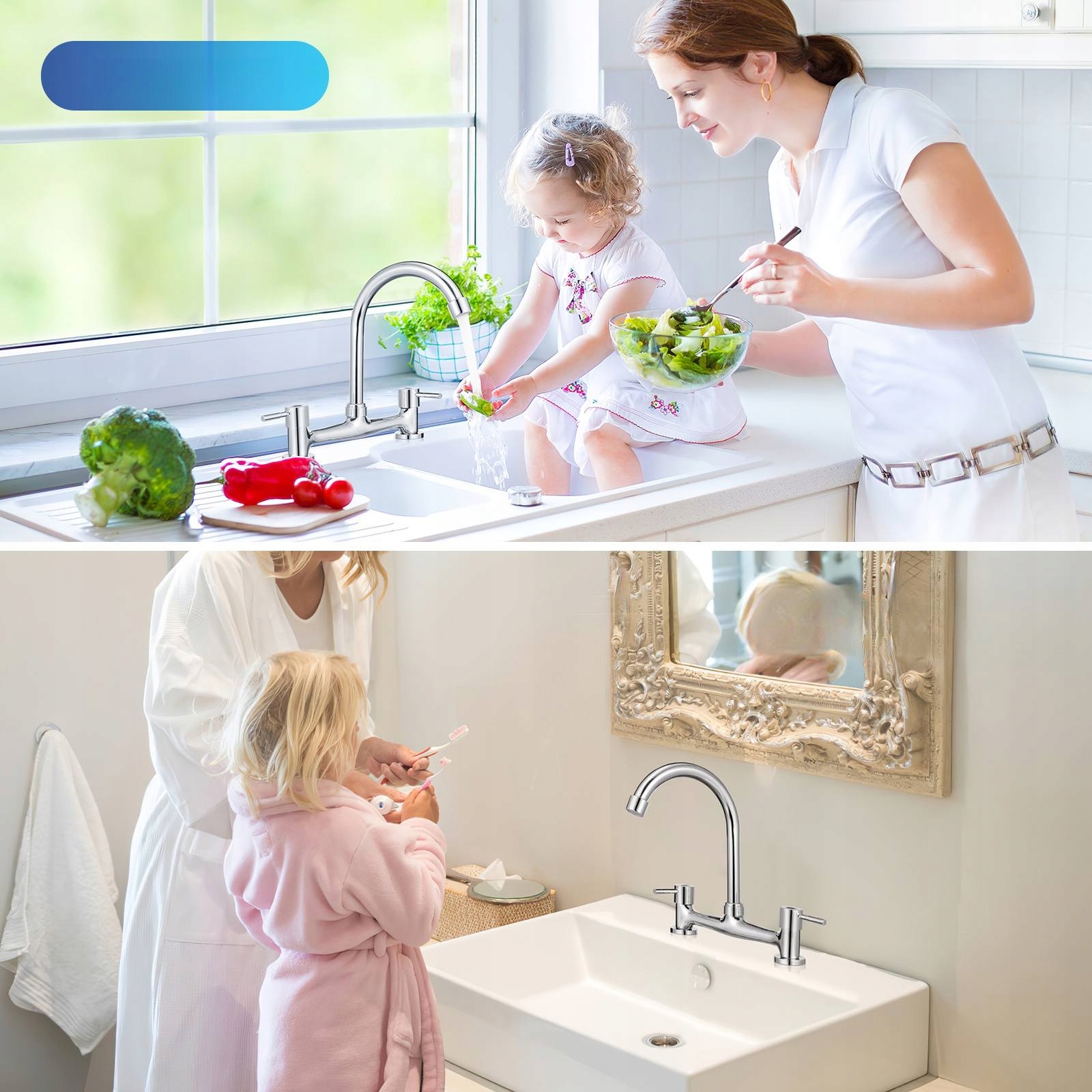 ✅Вы ищете профессиональный смеситель с двумя ручками для кухонной мойки или умывальника? Тогда этот продукт может удовлетворить ваши потребности. Смеситель вращается, легко устанавливается. Сетчатый фильтр может сделать поток плавным и уменьшить разбрызгивание. Это современный и практичный инструмент в вашем доме.