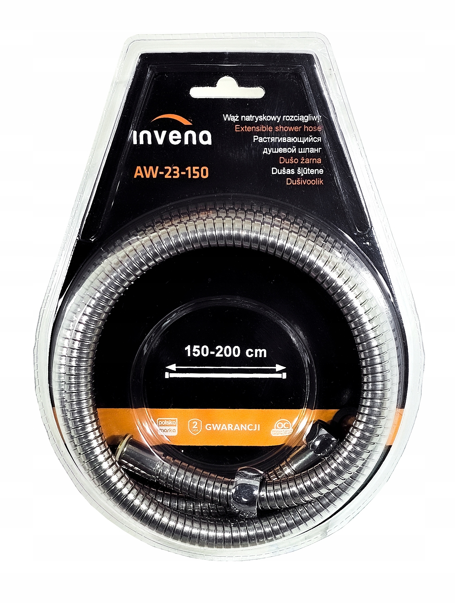 ХРОМИРОВАННЫЙ УДЛИНИМЫЙ ДУШЕВОЙ ШЛАНГ 150-200 ММ С ЦИЛИНДРИЧЕСКИМ КОНЦОМ INVENA