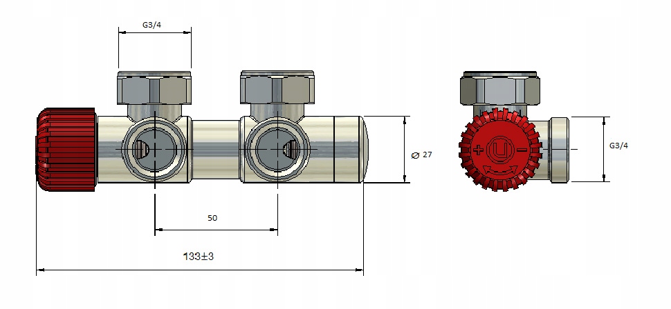 Клапан TWINS в термостатической версии специально разработан для радиаторов с нижним подключением и расстоянием между патрубками 50 мм.