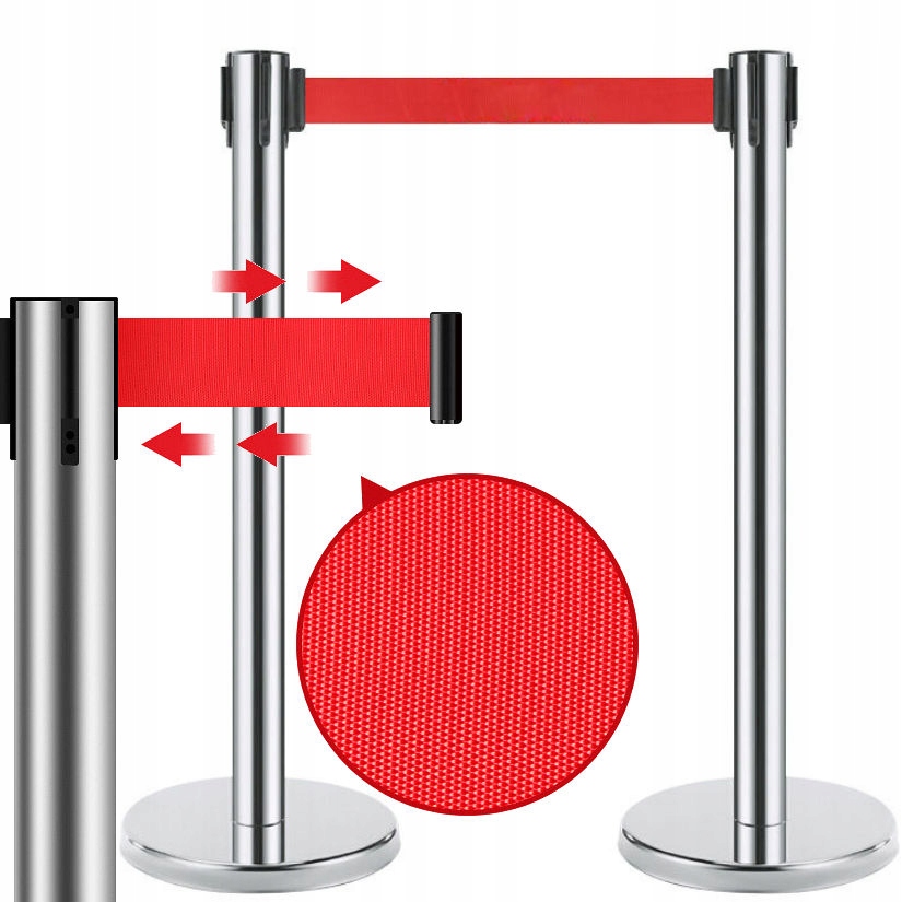 Стойки из нержавеющей стали высочайшего качества высотой 90 см являются идеальным решением для упорядоченного разграничения пешеходного движения. Он будет хорошо работать в гостиницах, клубах, выставочных залах, ресторанах, кинотеатрах, аэропортах и т. д. Четырехосная ленточная система сборки позволяет определить практически любую конфигурацию угла подключения дополнительных стоек. Благодаря этому разметить путь даже самым необычным способом не составит труда. Конструкция устойчива благодаря тяжелому резиновому основанию диаметром 32 см. В комплект входят два столбика с двумя основаниями и красными лентами. Сама сборка очень быстрая и простая с использованием одного винта. Что немаловажно, на лентах нет отпечатков. Это позволяет добавлять собственную графику и персонализировать стенды (мы не оказываем такие услуги).