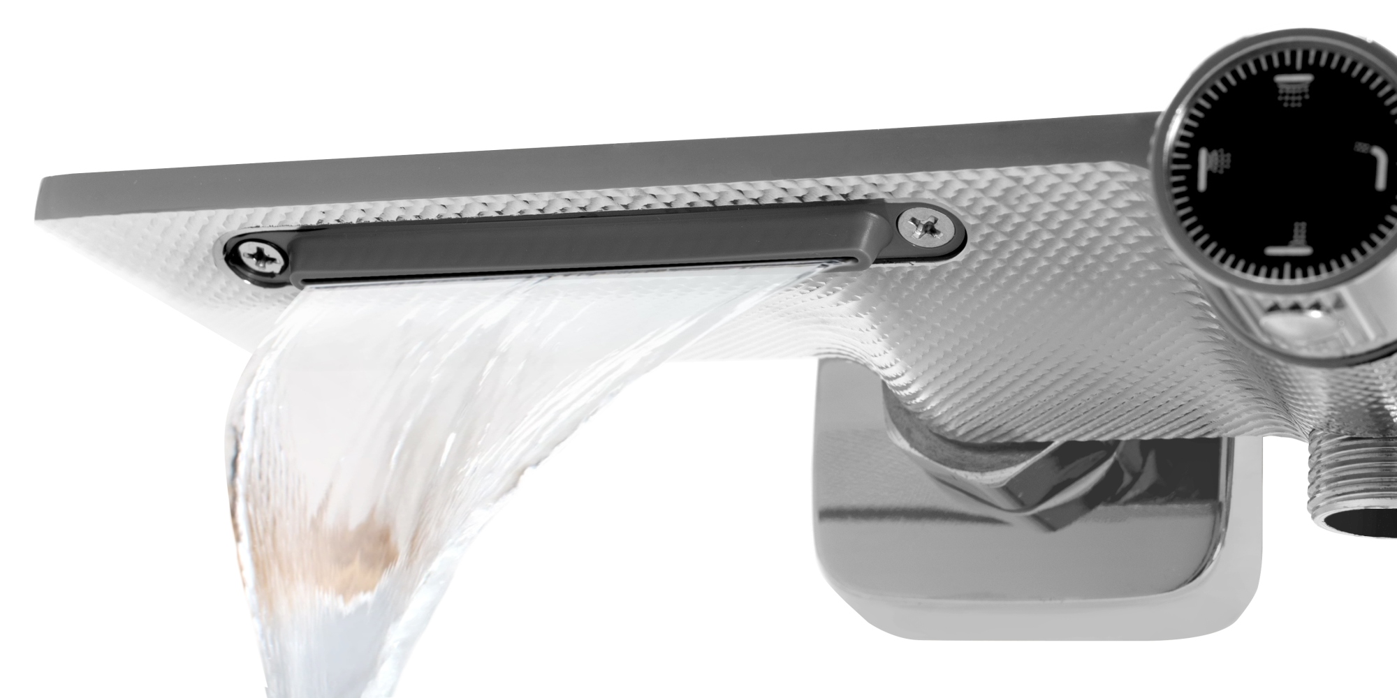 Душевой набор HELIX не ограничивается стандартными функциями, такими как тропический душ, душевая трубка или биде. Кроме того, он предлагает функцию струи воды в виде водопада, направленной прямо на душевой поддон или пол.