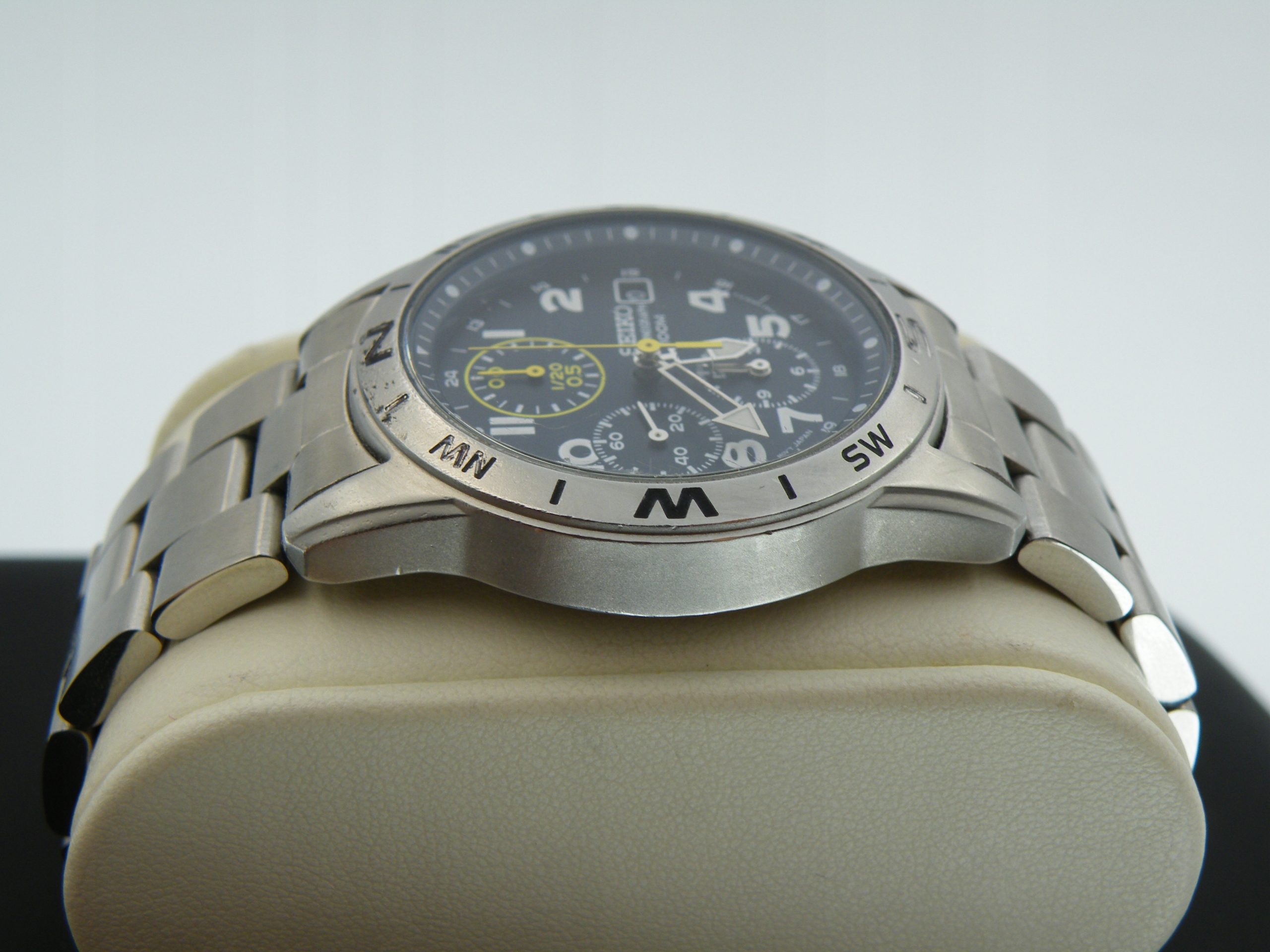 Кварцевый механизм с функцией хронографа, очень хороший ход.