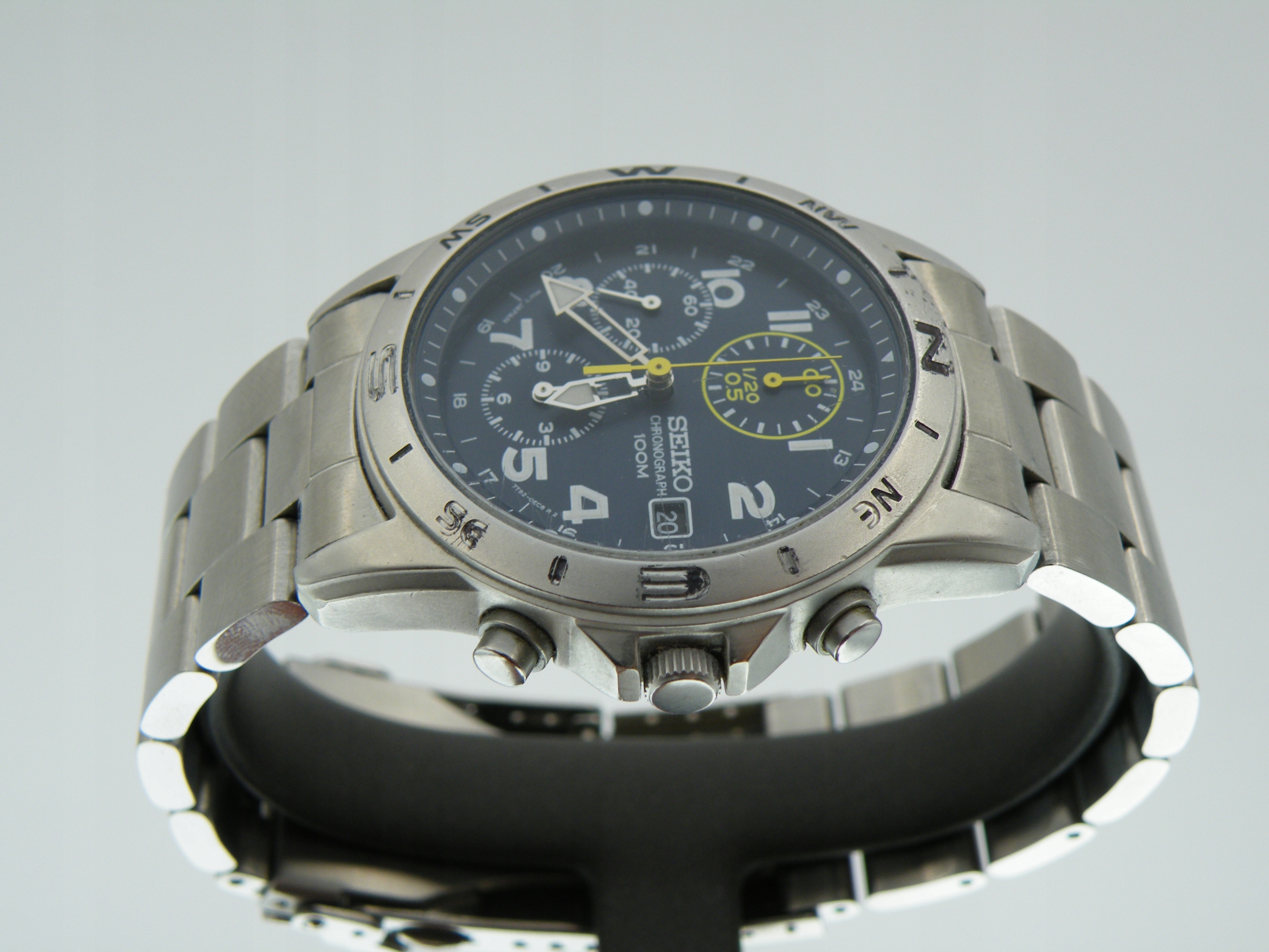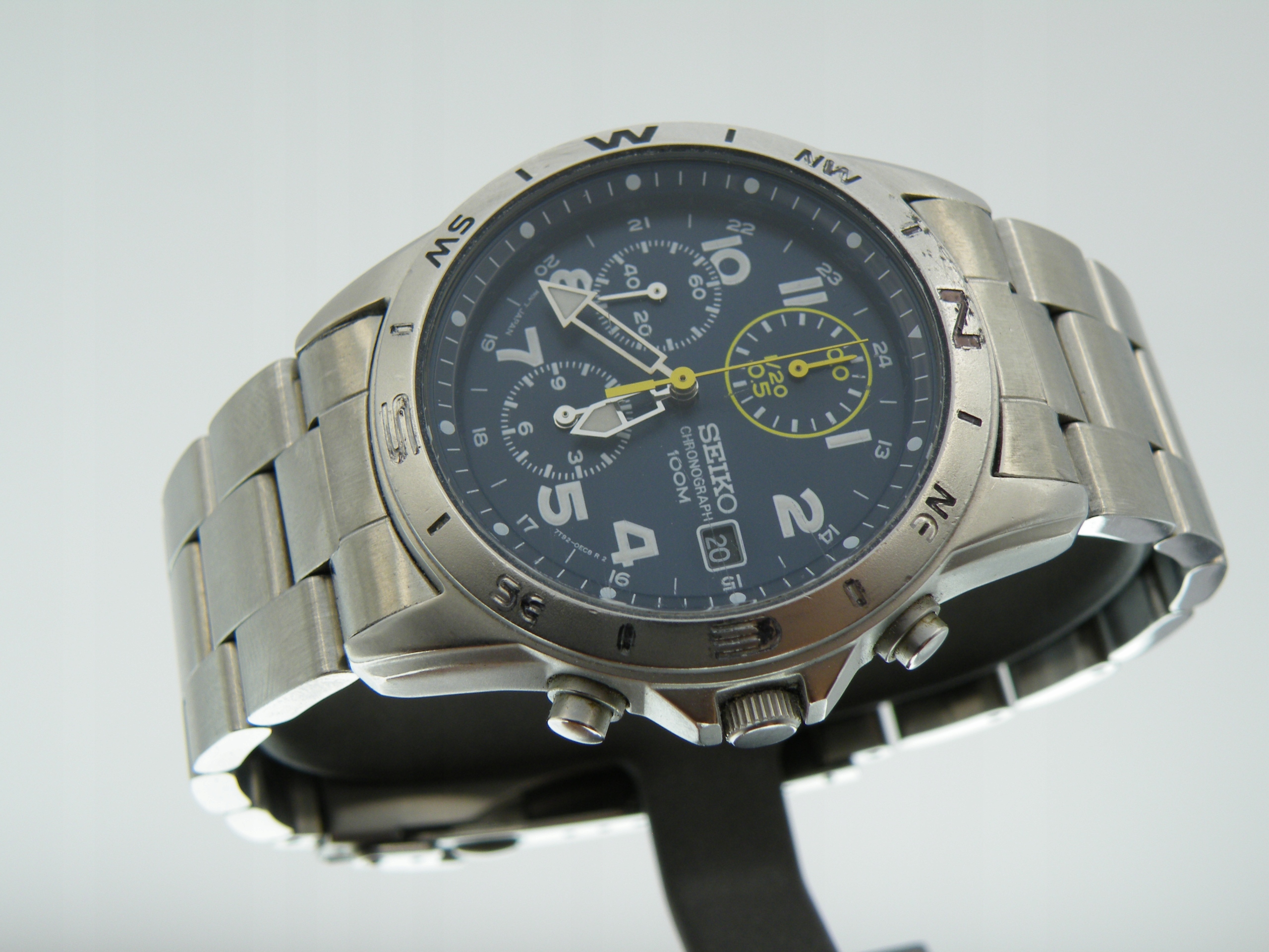 Хронограф Seiko с синим циферблатом из стали на браслете