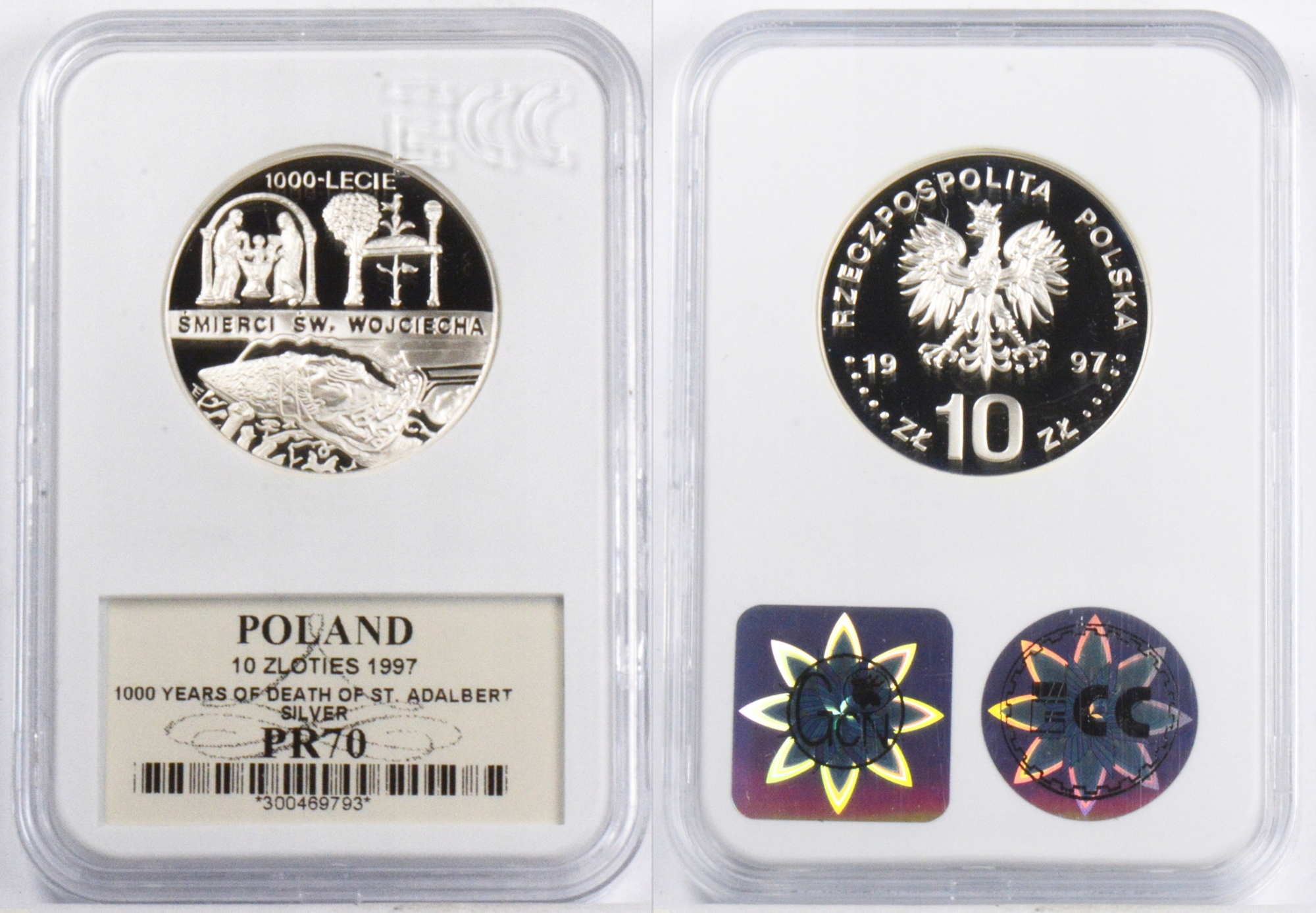 ХС. 10 ЗЛОТЫХ 1997 ГОДА 1000 ГОДОВЩИНЫ СО СМЕРТИ СВЯТОГО. ВОЙЦЕХА PR70 14/10