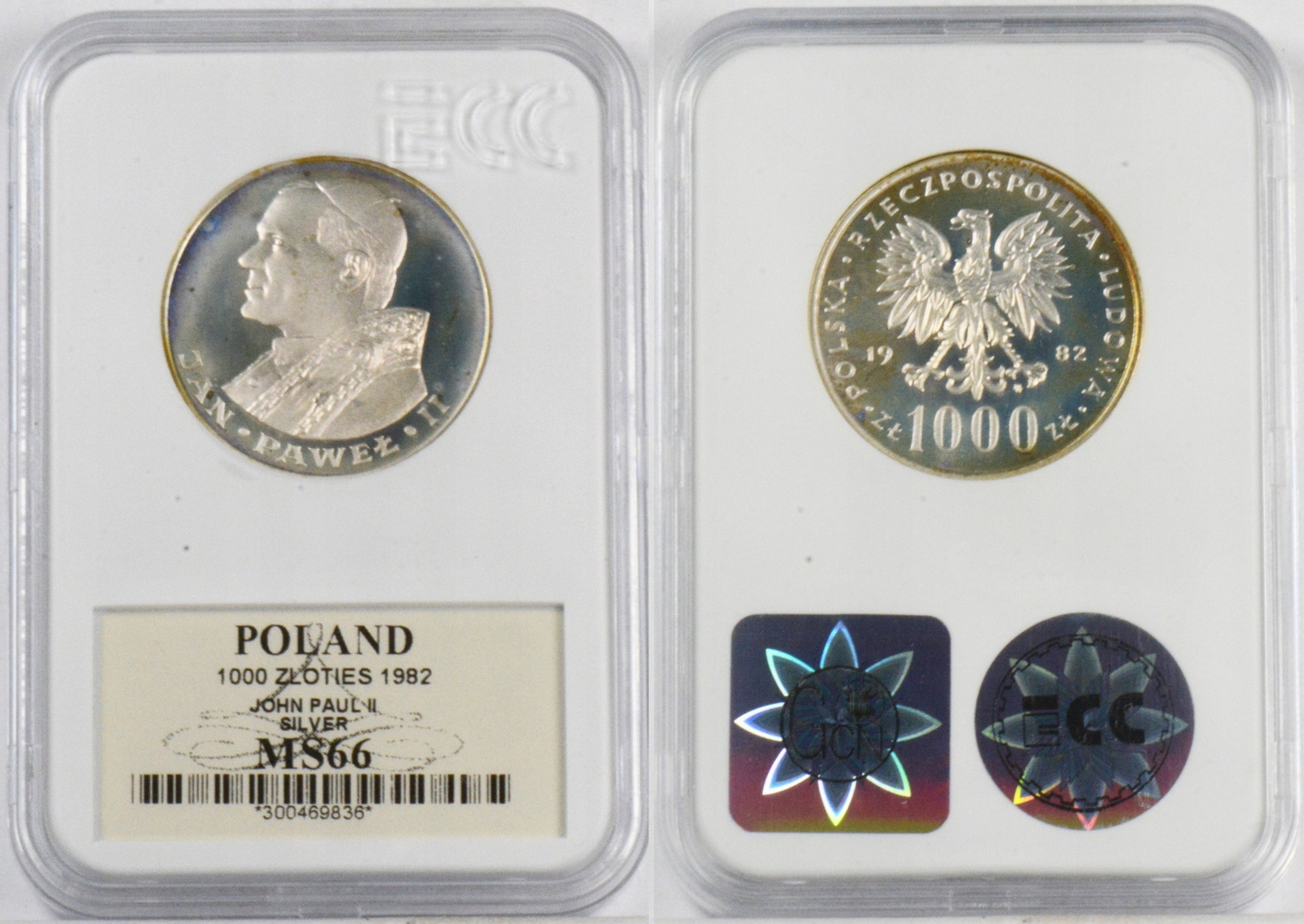 ХС. 1000 ЗЛОТИЙ 1982 ИОАНН ПАВЕЛ II MS66 14/11