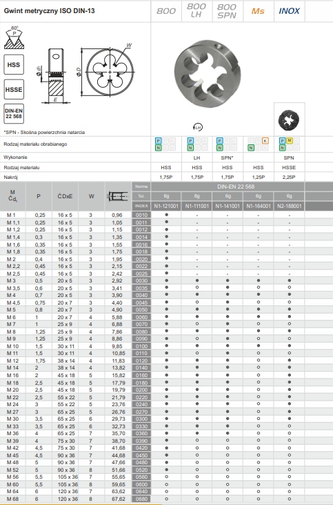 HSS 800 NORF используется для вырезания обычной метрической резьбы. Материал, из которого был изготовлен автомобиль - сталь высокой скорости высокой скорости - характеризуется высоким сопротивлением потреблению.