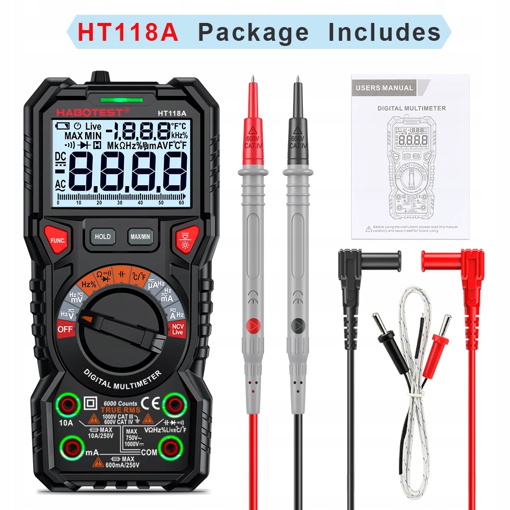 HT118A Цифровий мультиметр Струмометр Тестер напруги