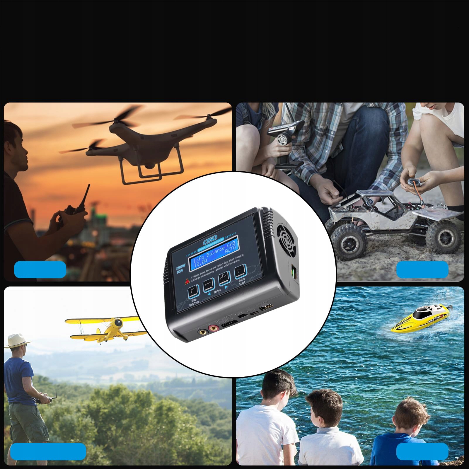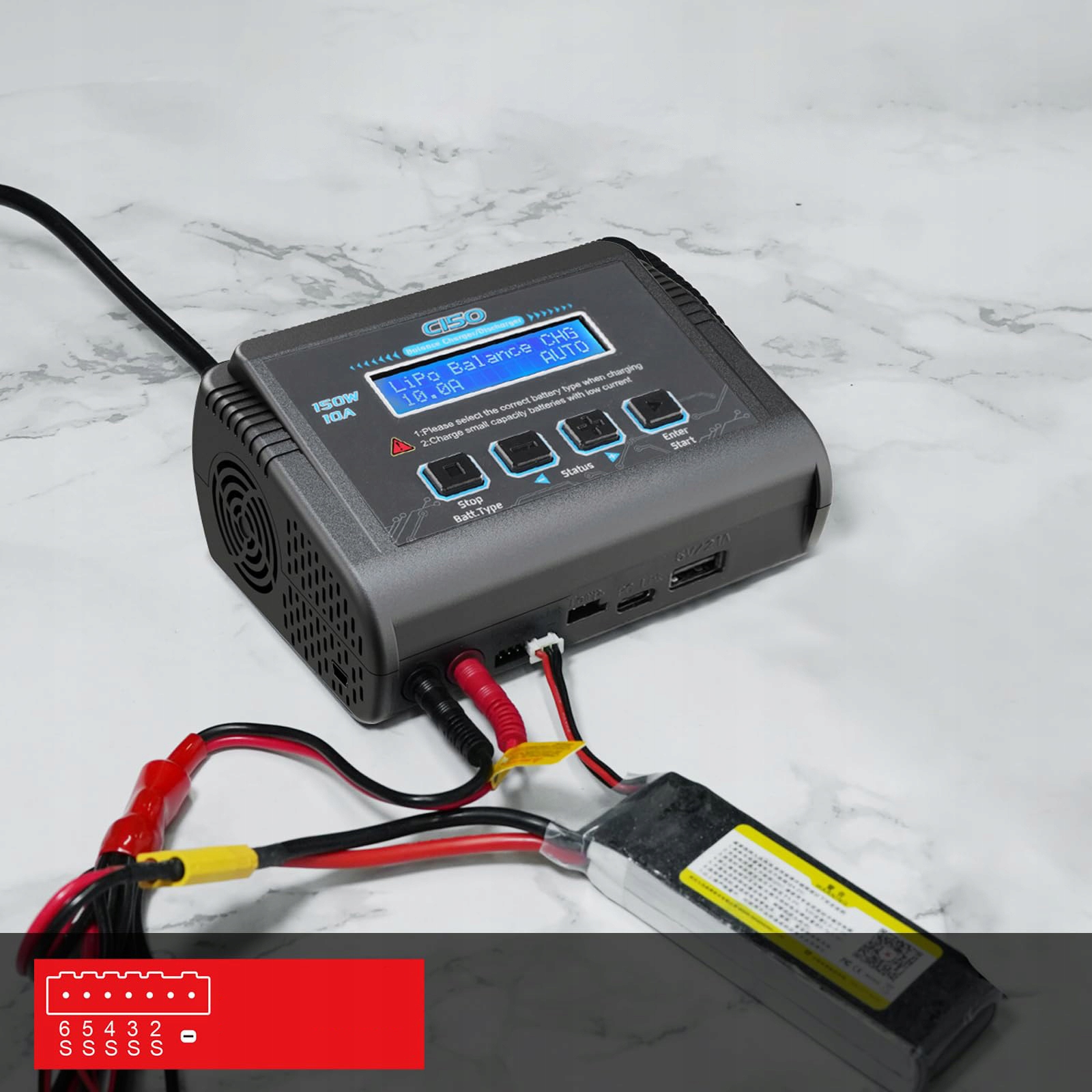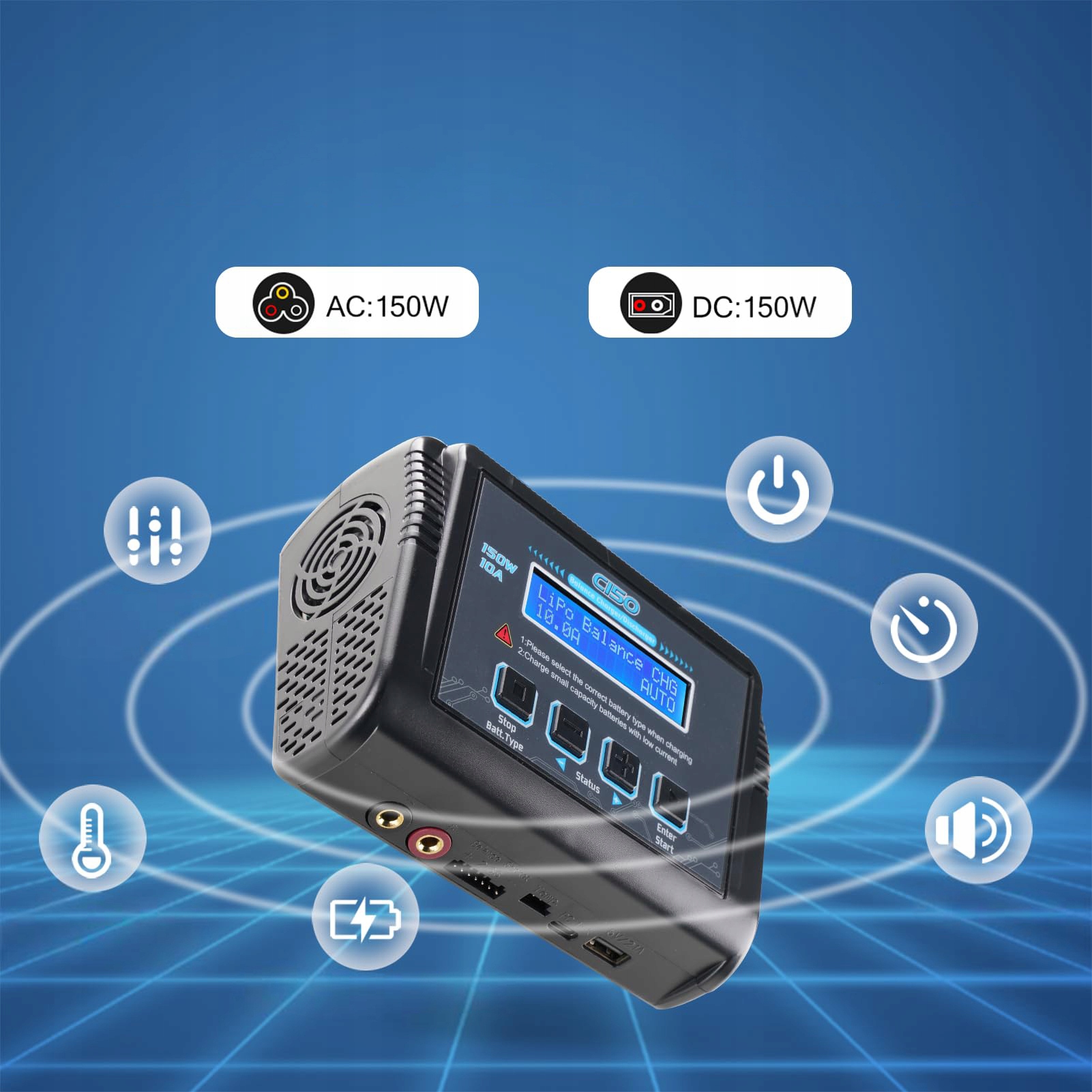 【Эффективное компактное зарядное устройство】Двойной вход переменного/постоянного тока: вход переменного тока 100–240 В, вход постоянного тока 11–18 В, максимальная выходная мощность 150 Вт, ток зарядки 0,1–10 А, ток разряда 0,1–2 А. Встроенный вентилятор и блок питания. С выключателем питания. Это портативное и быстрое зарядное устройство LiPo идеально подходит для различных аккумуляторов RC.