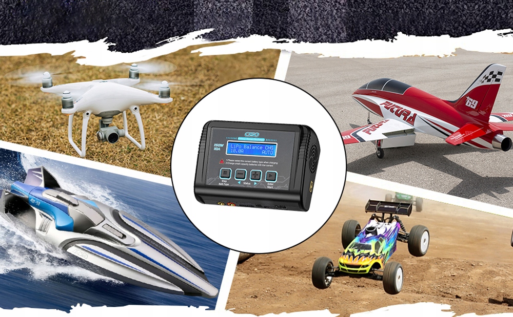 Поддерживает различные аккумуляторы Lipo 1-6S (3,7–22,2 В); Li-Ion 1-6S(3,6-21,6В), LiFe 1-6S(3,3-19,8В), LiHV 1-6S(3,8-22,8В); NiMH/NiCD 1-15S(1,2-18В); ПБ Батарея 2-20В; Интеллектуальная батарея?/?/?(Требуется дополнительный зарядный кабель DJI). Зарядное устройство C150 удовлетворит все ваши потребности в зарядке аккумуляторов RC.