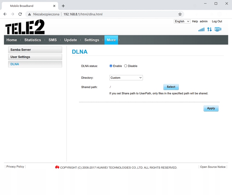 - управление на польском языке от Huawei Hilink для Android и IOS