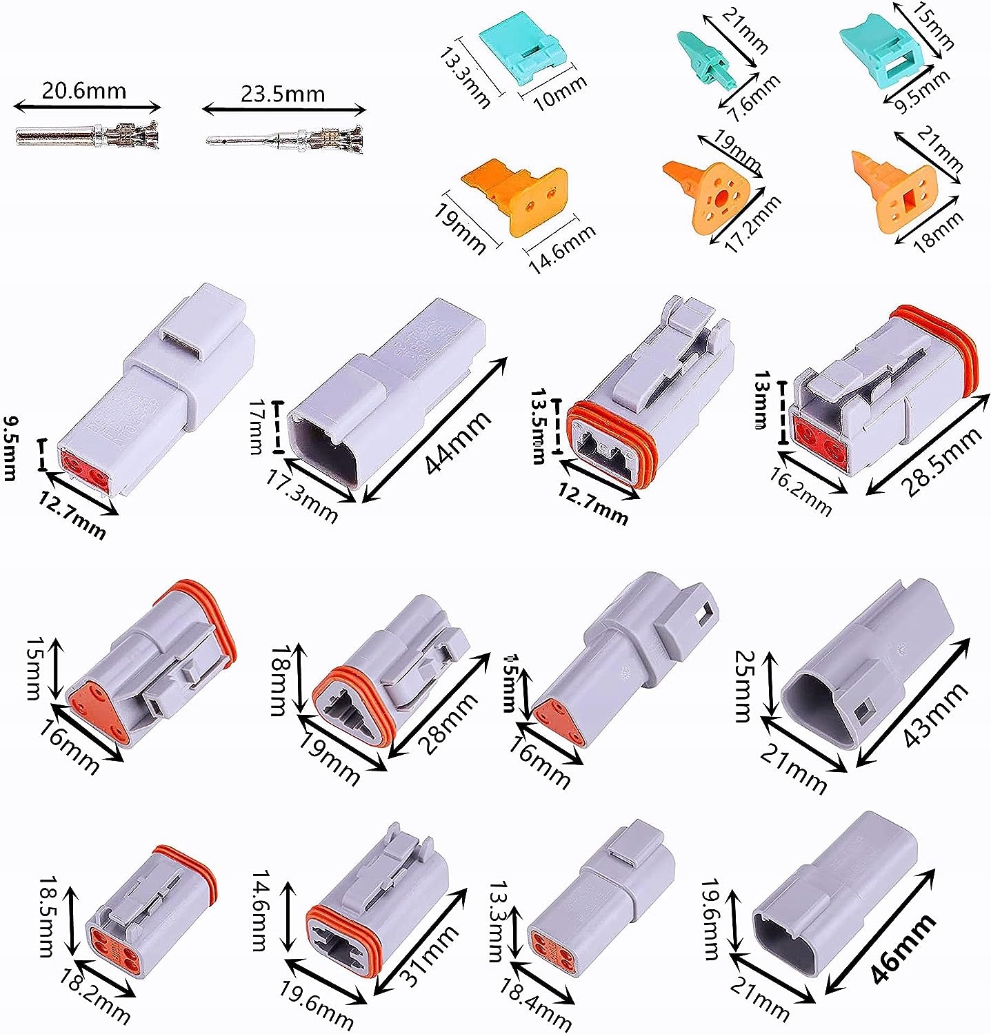 Набор вилок HUAZIZ DT, 6 наборов вилок DT, 2 контакта, 3 контакта, 4 контакта, герметичные, серые, вилка и розетка, автомобильный водонепроницаемый электрический штепсельный разъем, серия DT для автомобилей, грузовиков, лодок, 22- 18AWG.