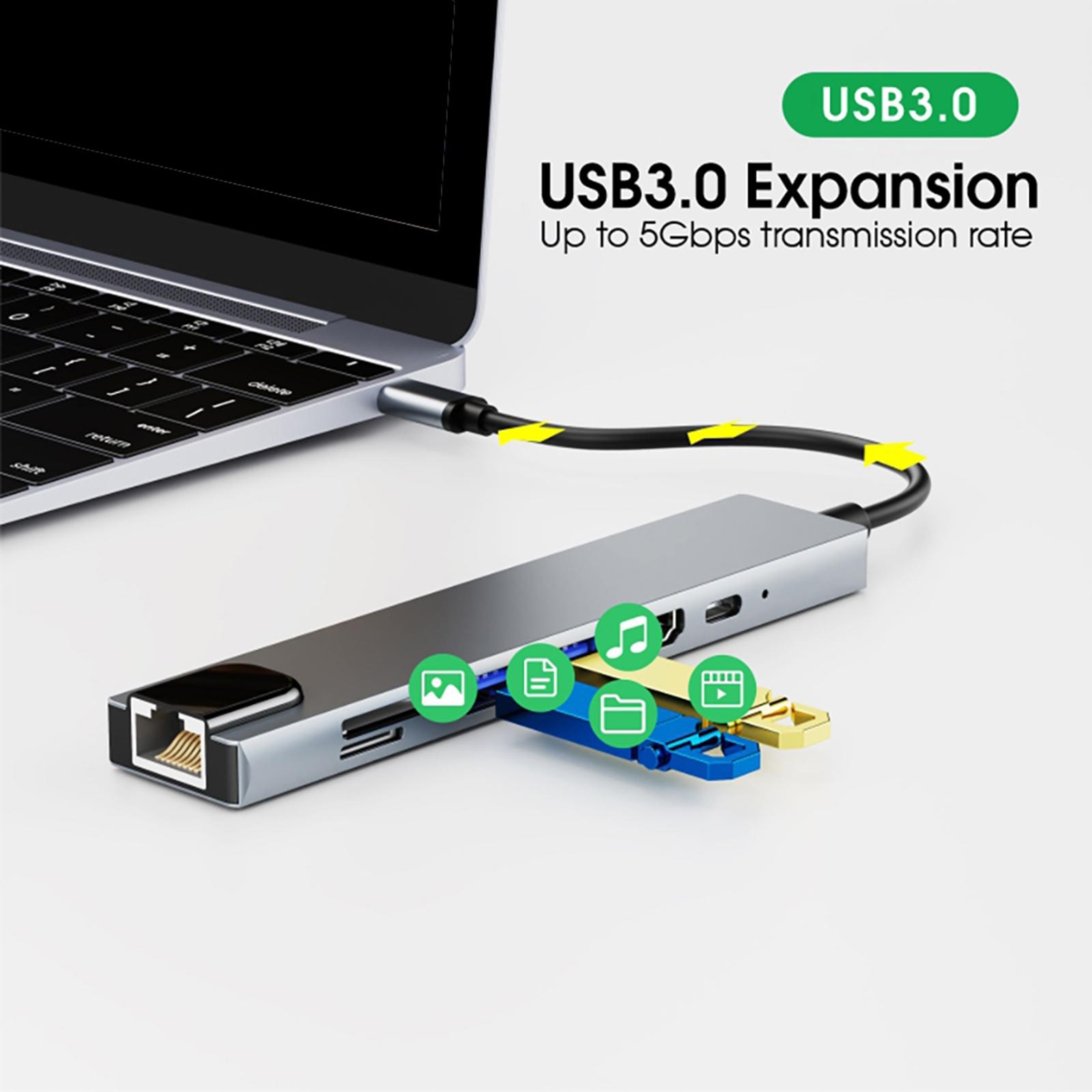 Ethernet-концентратор типа C Семь портов для аксессуаров ноутбука с 4K, USB