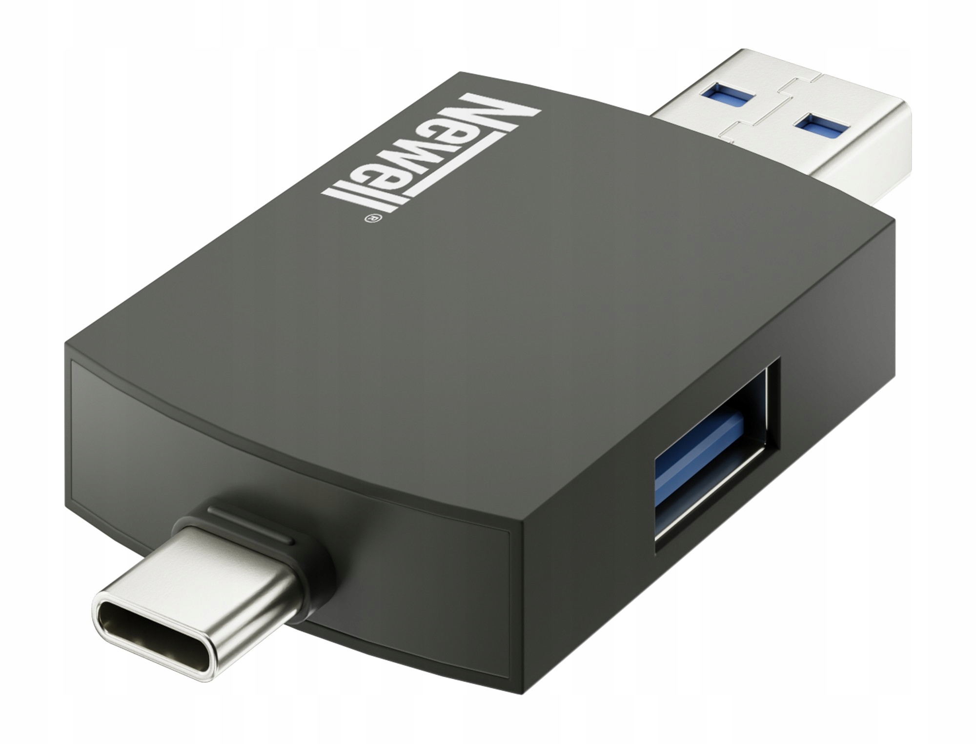 hub newell OTG 3 в 1 длиной всего 7 см, благодаря которому вы можете легко вписать его почти в каждом кармане. Устройство изготовлено из прочного алюминиевого сплава, обеспечивающего долговечность и ультрачувствительность. Производитель также позаботился о адекватной защите USB -заглушек. Специальные вилки эффективно защищают их от пыли и пыли
