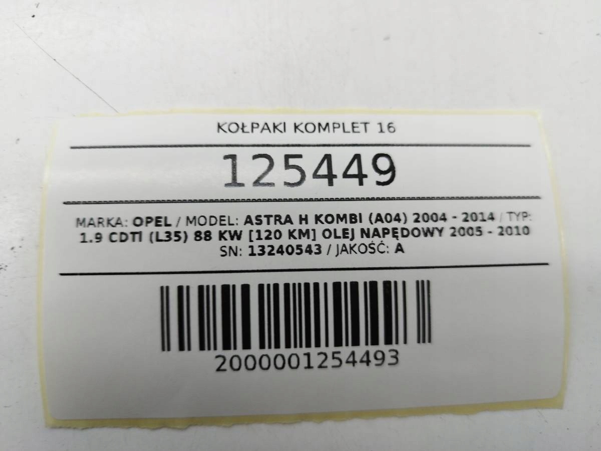 Hubcaps Hubcap Capsel 13240543 Набор структуры Opel Astra H III Zafira