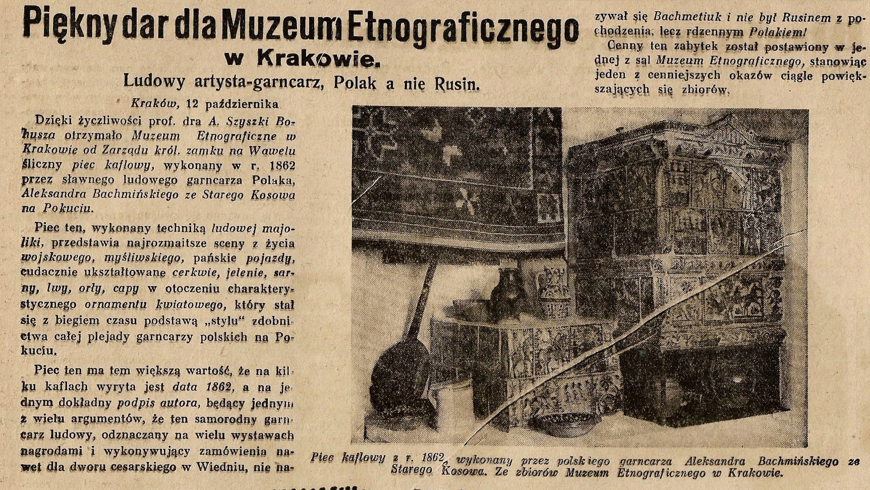 HUCULSZCZYZNA KOSÓW BACHMAŃSKI PIEC KAFLE CERAMIKA - PARKOSZ powiat DĘBICA