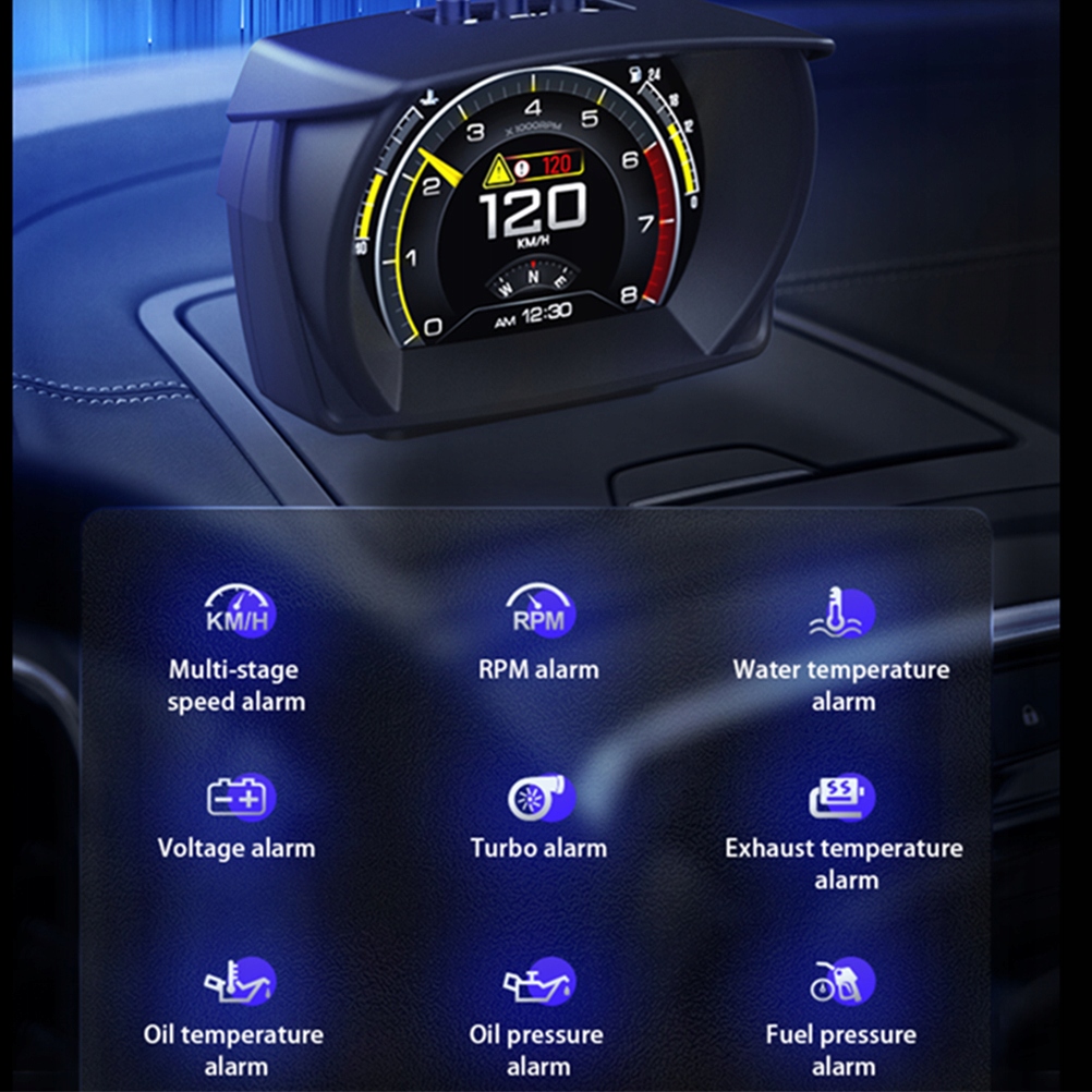 1.1. Умная кодовая таблица ЖК-дисплея с OBD2+GPS+градиометром, 3 режима в одном. 2.2. Недавно добавлен электронный датчик градиента G-Seneor. (Контроль в реальном времени наклона автомобиля влево и вправо, угла подъема и спуска) 3.3. Хост можно подключить к подчиненному устройству для отображения на отдельных экранах, интерфейс можно переключать по желанию, а данные можно сразу просмотреть. 4.4. Вы можете свободно переключать 10 видов экранов дисплея. 5.5. Добавлена функция обхода сигнализации. (Если произойдет ошибка или аномалия, на главном интерфейсе сразу же появится символ тревоги и ненормальные параметры, а также будет издан звуковой сигнал) 6.6. Новые функции: наружная температура, температура масла вариатора, давление турбонагнетателя, нагрузка на двигатель, температура выхлопных газов, температура на впуске, давление топлива, давление масла, широта и долгота, день недели, угол крена, угол возвышения.