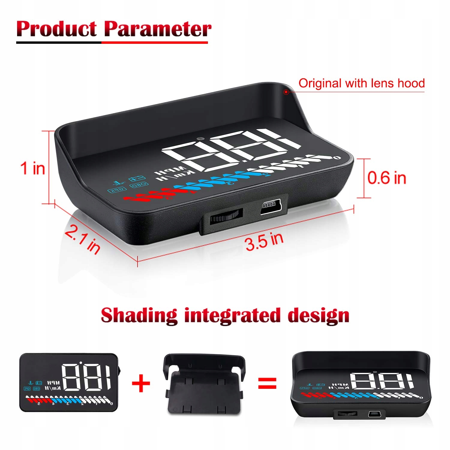 - 3.5 -Inch Светодиодный экран: HUD CAR Display Отображает информацию на дисплее на ветровом стекле и облегчает чтение во время вождения. Большие и прозрачные изображения, накрывшись в верхней части экрана и датчика света, благодаря которого экран автоматически меняет ясность в зависимости от условий окружающей среды. Все они обеспечивают безопасное и легкое вождение.