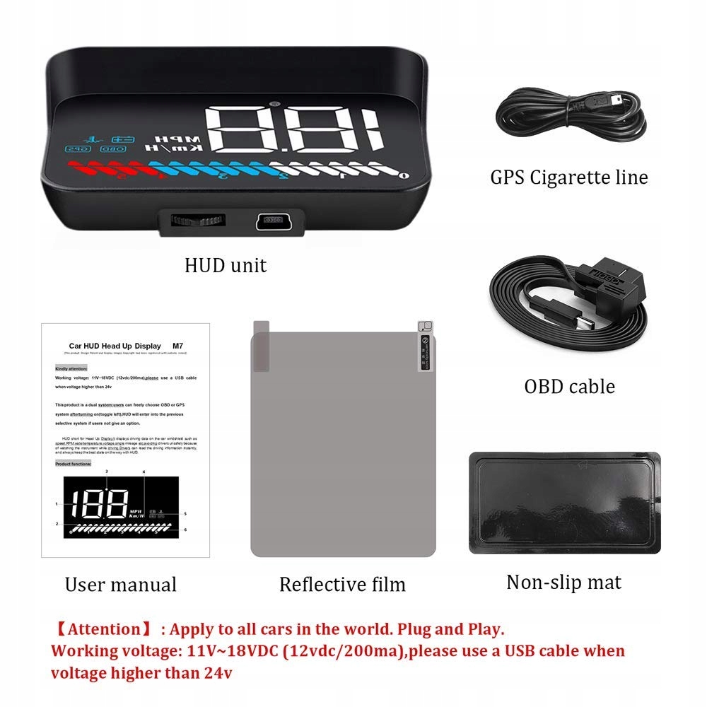 - 【Для всех транспортных средств для подключения и воспроизведения】 : дисплей головы подходит для всех автомобилей, транспортных средств, транспортных средств и грузовых автомобилей. Двойная система (OBD2 и GPS -система) регулируется с одним колесом. 2 разных кабеля на выбор, простые в установке, подключение и немедленную работу.