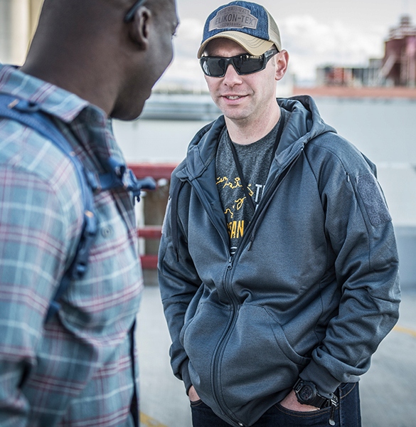 ВНИМАНИЕ! Предметом предложения является толстовка URBAN TACTICAL HOODIE (FullZip)® в черно-сером меланжевом цвете. Остальные элементы используются для визуализации функциональности.