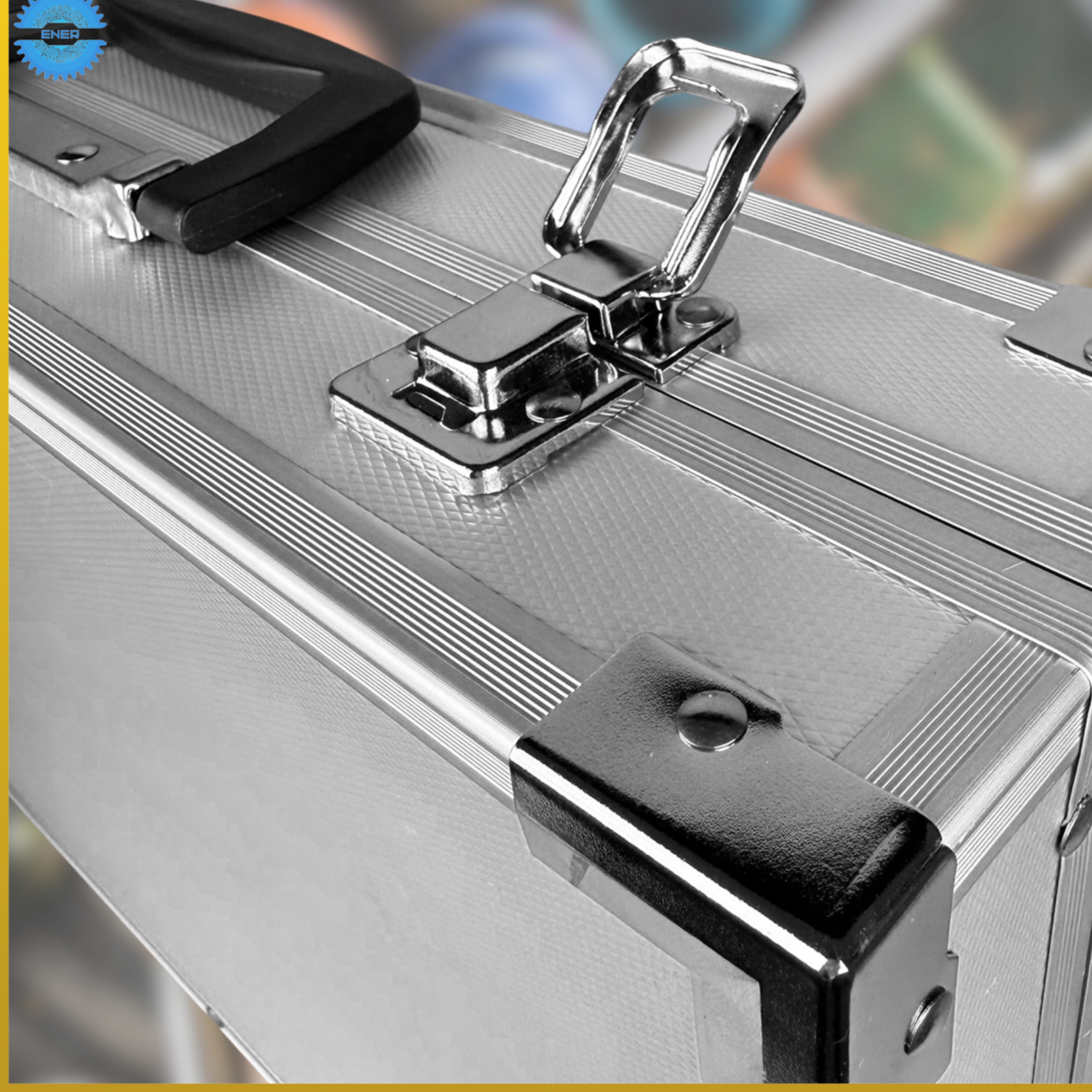 - Прочный алюминиевый чемодан: Защищает аксессуары от повреждений и облегчает переноску благодаря прочной ручке и прочному закрыванию.
