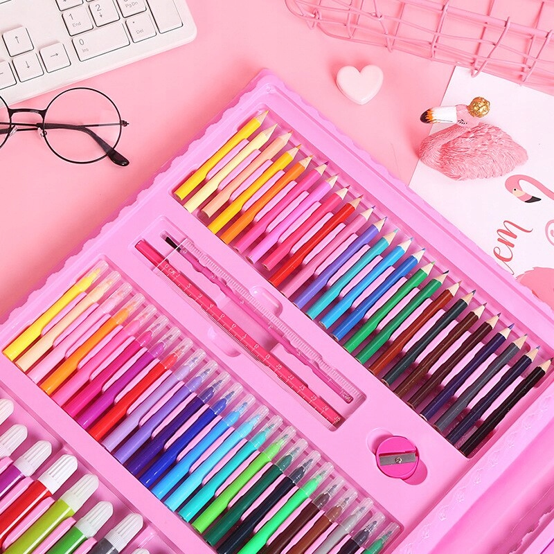 Художественный набор для живописи 208 элементов для детей + чемодан + складной доска (розовый или синий)