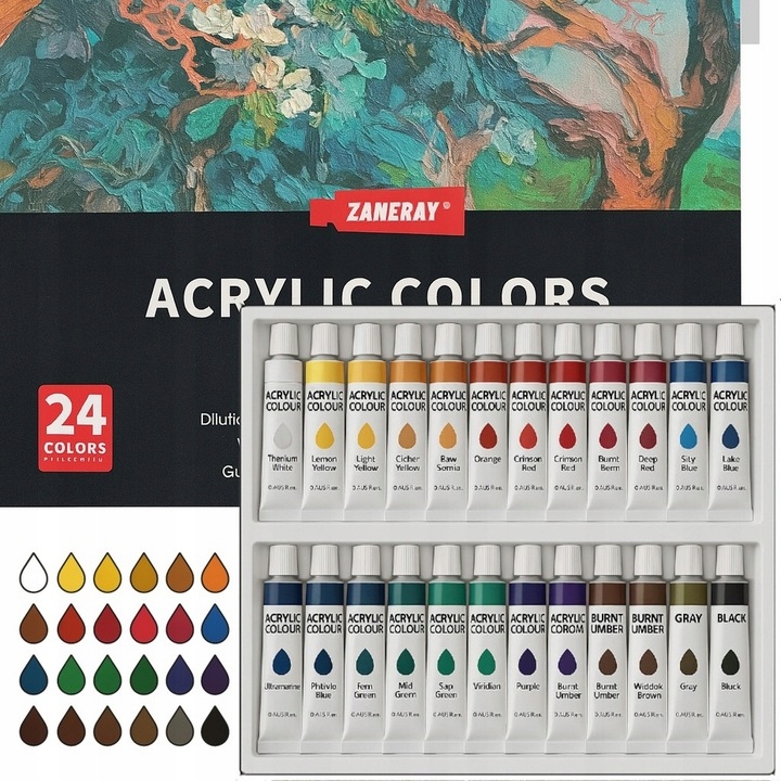 - 24 акриловые краски по 12 мл