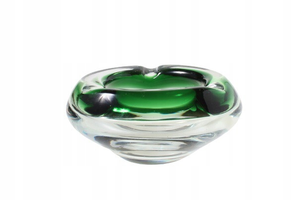 ХУДОЖНЯ СКЛЯНА ПОПЕЛЬНИЦА ІЗ ЗЕЛЕНОЮ СТРАМОМ