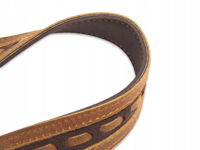 Ремень кожаный, декоративно переплетенный по всей длине длина . Регулировка длины с обеих сторон. Облицован противоскользящей резиной. Внешняя часть из коричневого бархата.