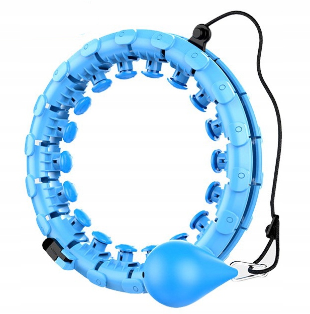 Обруч состоит из 24 съемных сегментов, что позволяет легко подогнать устройство под свою фигуру. Регулируемый обхват составляет от 50 см до 107 см, что делает обруч универсальным и подходящим для каждого. Дополнительный вес вращается за счет центробежной силы, что повышает эффективность тренировки.