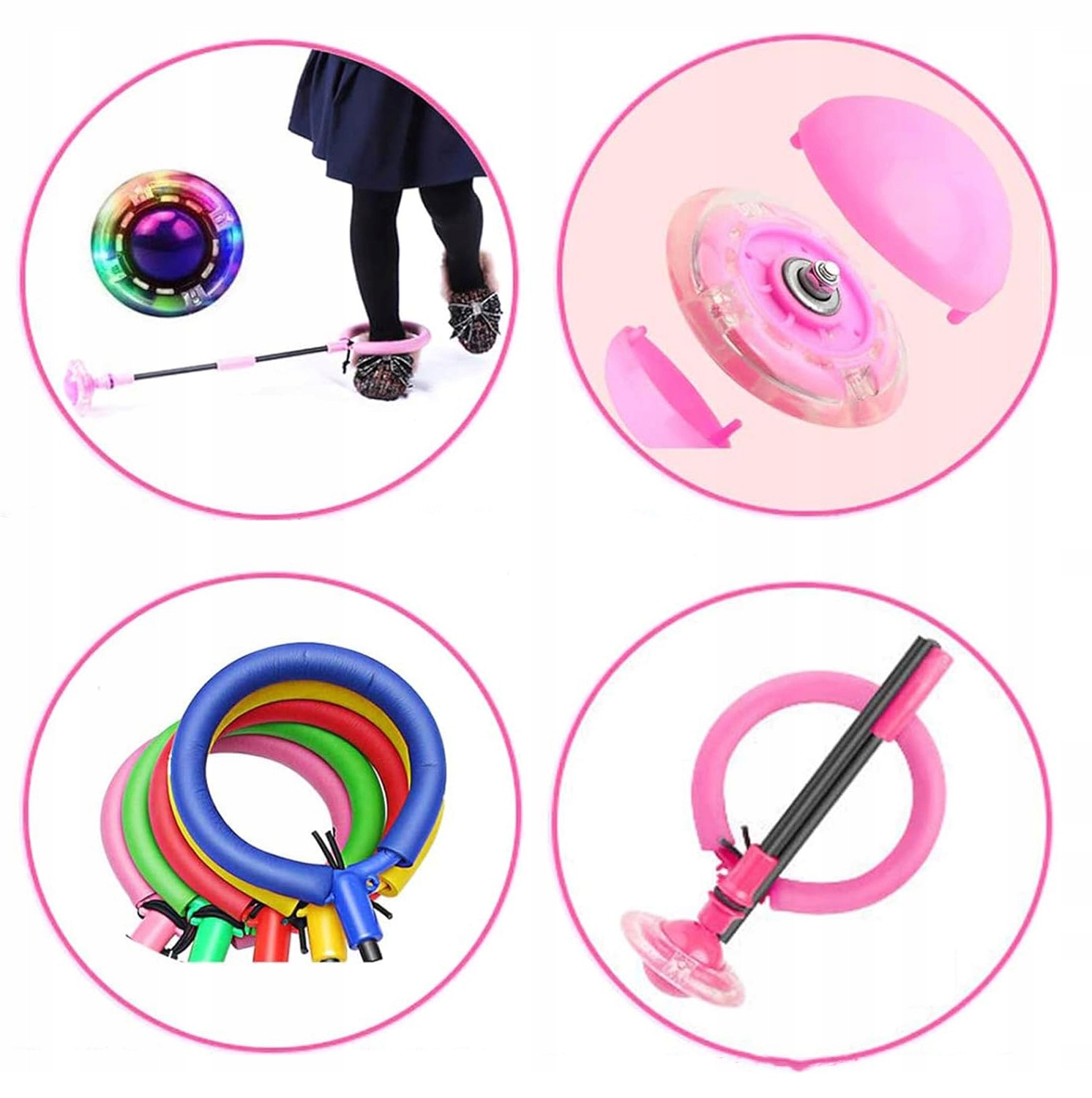 🌞 Легкая корзина для прыжков: Прыгающий мяч — новинка разновидность детской прыгающей корзины. Когда малыш перепрыгивает через качели одной ногой, автоматически разыгрывается красочное световое шоу благодаря электромагнитной индукции.