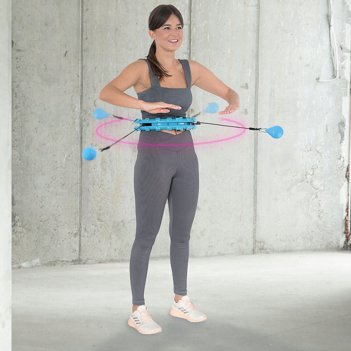 ✅Управление HHW01 очень простое и интуитивно понятное. Это замкнутый контур, к которому прикреплен рельс с прикрепленным гравитационным шаром (грузом). При выполнении круговых движений бедрами начинает действовать центробежная сила, которая перемещает гравитационный шар по кругу, приводя мышцы живота и туловища в состояние напряжения.