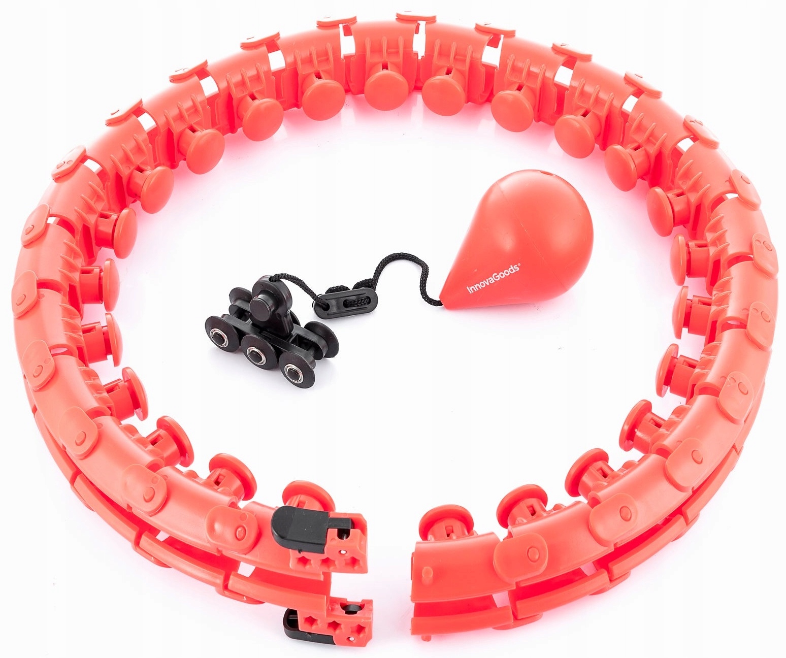 Этот прочный утяжеляющий обруч эргономичен и многофункциональен, поскольку позволяет одновременно тренировать и массировать талию. Идеально подходит для укрепления и укрепления мышц тела во время тренировок в домашних условиях. Он складной, поэтому адаптируется к размеру вашей талии. Он состоит из 24 частей, которые можно легко соединять и отсоединять для достижения желаемого размера. Хула-хуп оснащен коннектором с предохранителем и внутренними пружинами с гибкими выступами, которые обеспечивают стабильное удержание и поглощают силу вращения, создавая массажный эффект на 360°. В комплект входит гиря (весом 280 г) со блоком и регулируемая веревка, позволяющая регулировать длину. Этот тип обруча (автовращающийся) проще в использовании, чем обычный обруч, и его настоятельно рекомендуется новичкам, поскольку он не падает во время использования. Кроме того, он позволяет быстрее сжигать калории благодаря возможности увеличивать скорость. В разобранном виде занимает мало места, что облегчает транспортировку и хранение.