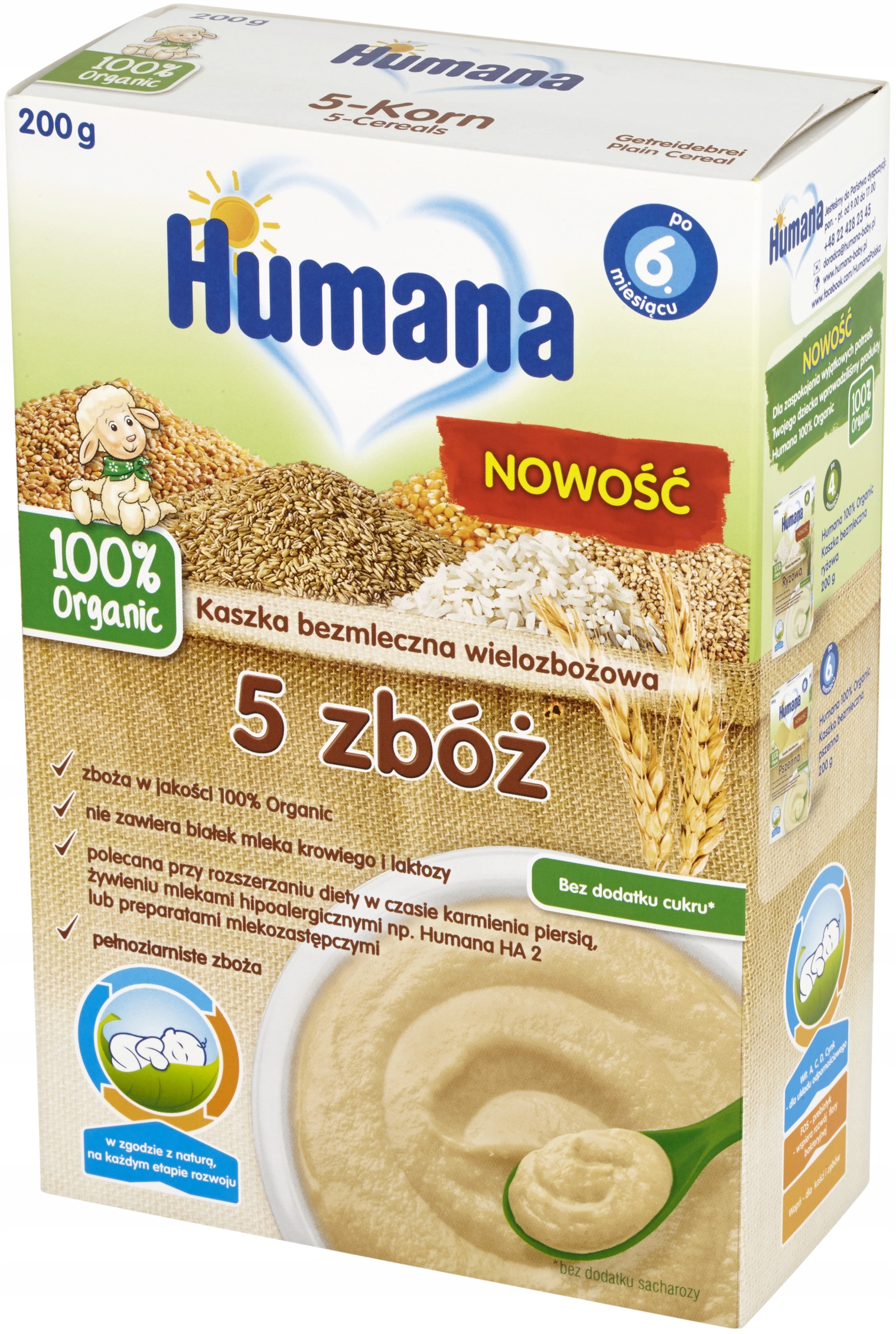 HUMANA БЕЗ МОЛОЧНЫХ ЗЕРНОВ 5 ЗЕРНОВ 200 Г — 100% ОРГАНИЧЕСКИЕ