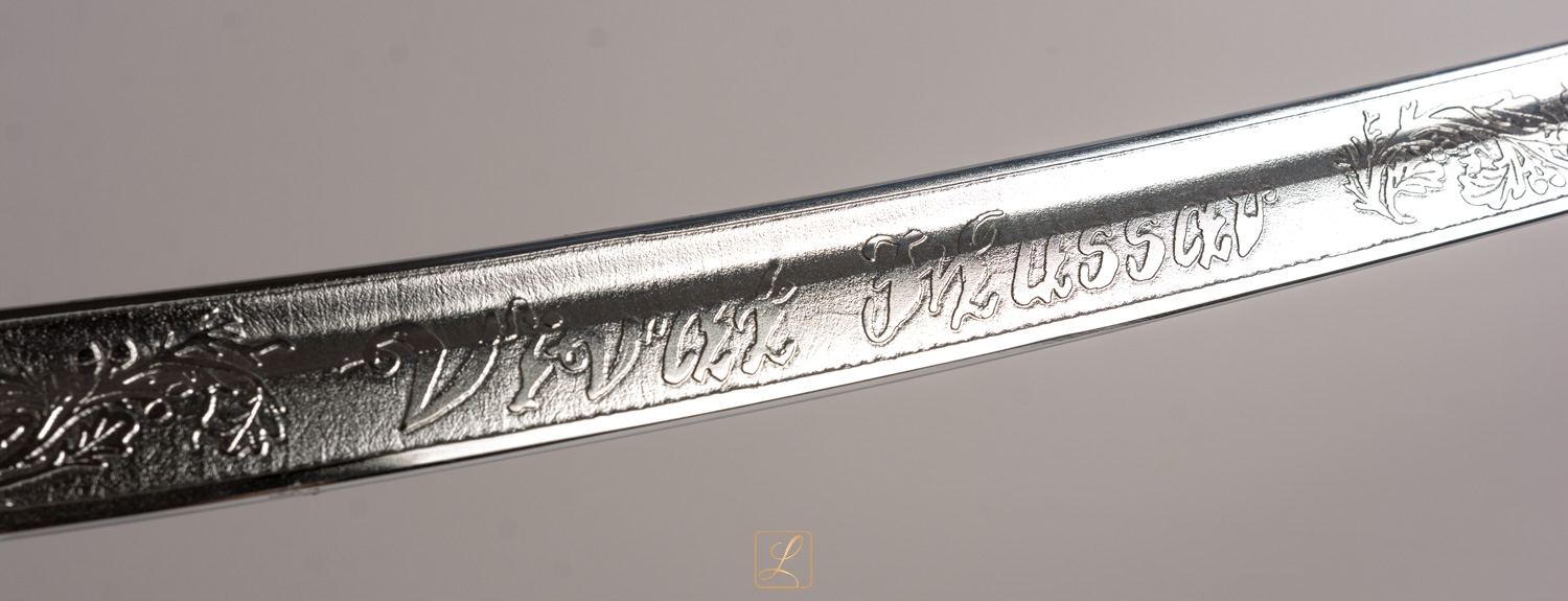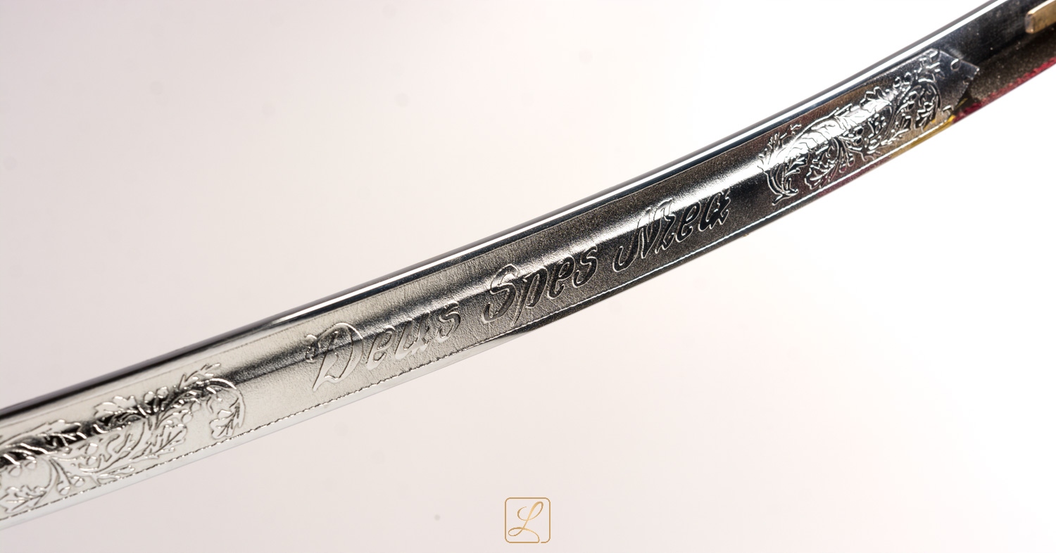 Польская гусарская сабля с влагалищем, 17 век, хромированная + подвесная таблица. "Vivat Hussar", "Deus spes mea"