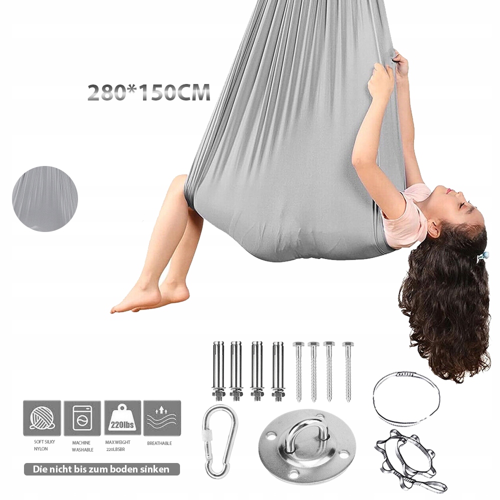 【ВНУТРЕННИЕ СЕНСОРНЫЕ КАЧЕЛИ, МЯГКИЕ И УДОБНЫЕ】Эти терапевтические качели изготовлены из высококачественного материала - мягкого и шелковистого нейлона. Размеры: 150х280 см. Дети могут удобно расположиться в гамаке, как в коконе, чувствуя себя спокойно. Наш модернизированный детский гамак блокирует нежелательную сенсорную стимуляцию. Детские качели прочные и безопасные, их могут использовать дети весом до 100 кг.